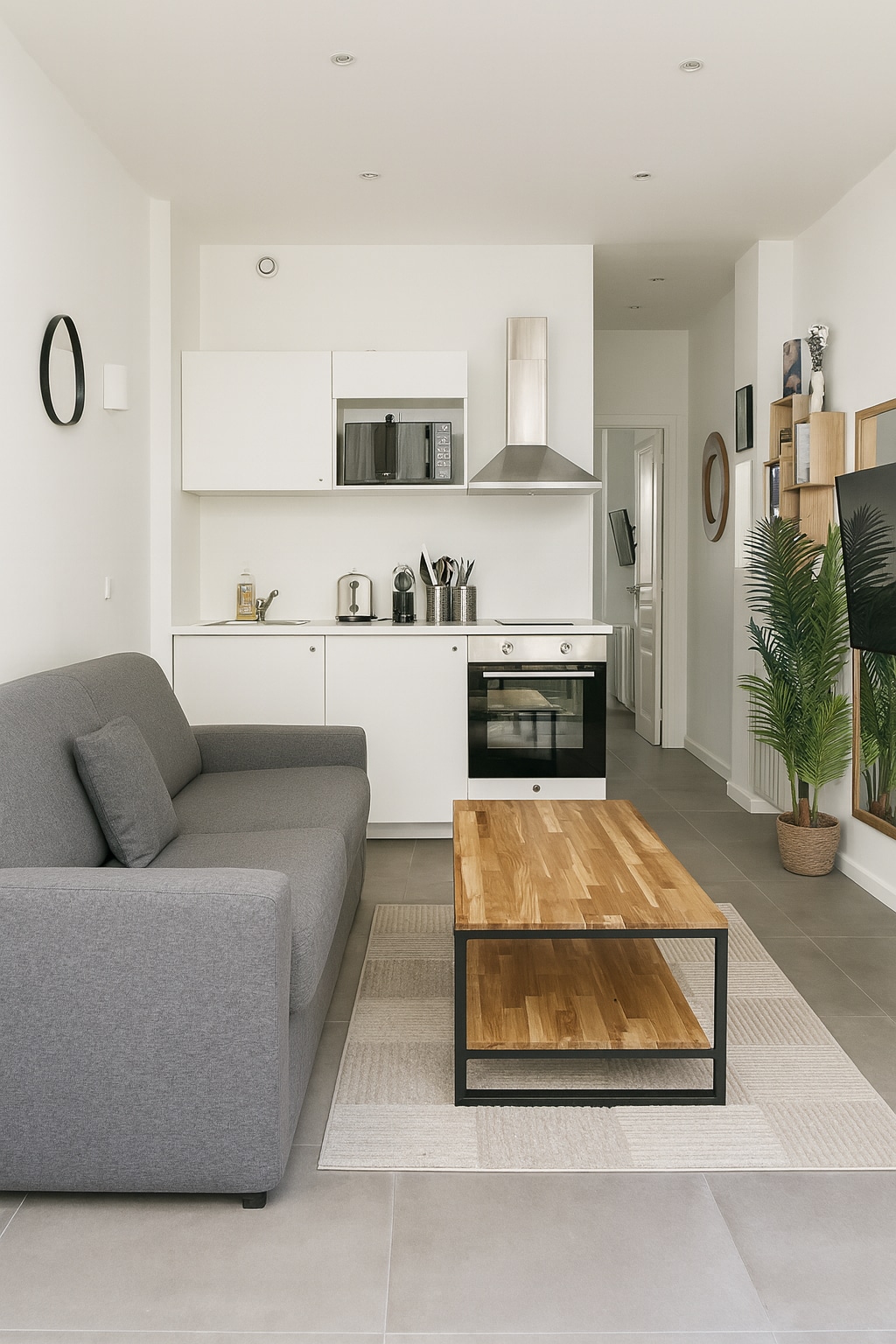 Enjoy our elegant Parisian apartment. We are also happy to share our 15 years of Parisian experiences as well as our tips and habits regarding activities around our neighborhood and in Paris ! The apartment is fully furnished and offers a kitchen open to the living room, a bedroom with a large quality double bed (160×200) and a bathroom. The apartment is located on the 4th and last floor (without elevator: not recommended for XXL luggage)!