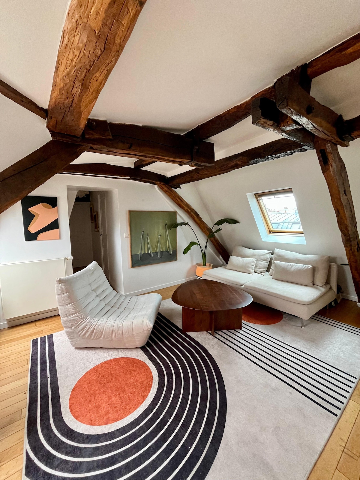 पेरिस के लुभावने नज़ारे वाला आकर्षक स्टूडियो! मुख्य विशेषताएँ: एक प्रामाणिक और गर्म वातावरण के लिए उजागर बीम के साथ छत आरामदायक रात के लिए एक आरामदायक डबल बेड एक आरामदायक डेस्क एरिया, जो एक अच्छी किताब के साथ काम करने या आराम करने के लिए बिल्कुल सही है लिविंग स्पेस: एक चमकीली और आकर्षक जगह में आराम करें, कुदरती रोशनी में बड़ी - बड़ी खिड़कियों से नहाएँ, जो पेरिस की छतों के शानदार नज़ारे पेश करती हैं।