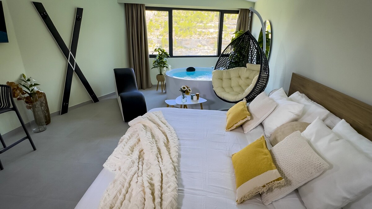 En esta casa cueva descubrir├бs la experiencia de vivir bajo una roca, con jacuzzi doble podr├бs observar el paso del tiempo en sus Amonite. Equipada con cocina, lavadora salon- comedor, aire acondicionado y TV en sal├│n y dormitorio. Ideal para una escapada rom├бntica y pensada para una experiencia unica. Ubicada muy cerca del castillo de Alcal├б del J├║car, tan solo a dos minutos del parking del castillo.