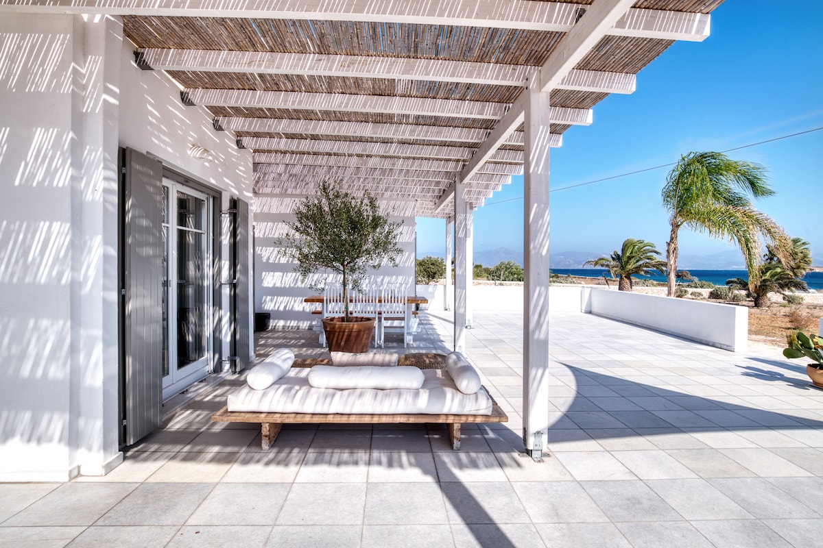 सी - ब्लू शटर खोलें और ठंडी हवा में चलें, फिर एक हवादार वॉटरफ़्रंट रिट्रीट में शहरी कंक्रीट किचन काउंटरटॉप पर स्नैक करें। बिना किसी रुकावट के समुद्र के नज़ारों के साथ इत्मीनान से सूर्यास्त के लिए विशाल, पत्तेदार बरामदे की तरफ़ कदम बढ़ाएँ! अपार्टमेंट सुबह के तैराकी के लिए एक रेतीले समुद्र तट के बगल में है और Naousa और इसके मुख्य स्क्वायर के केंद्र से 2 मिनट की पैदल दूरी पर है। दुकानें, रेस्तरां, सलाखों और क्लब पैदल दूरी के भीतर हैं, फिर भी यह क्षेत्र बहुत शांत और शांत है!