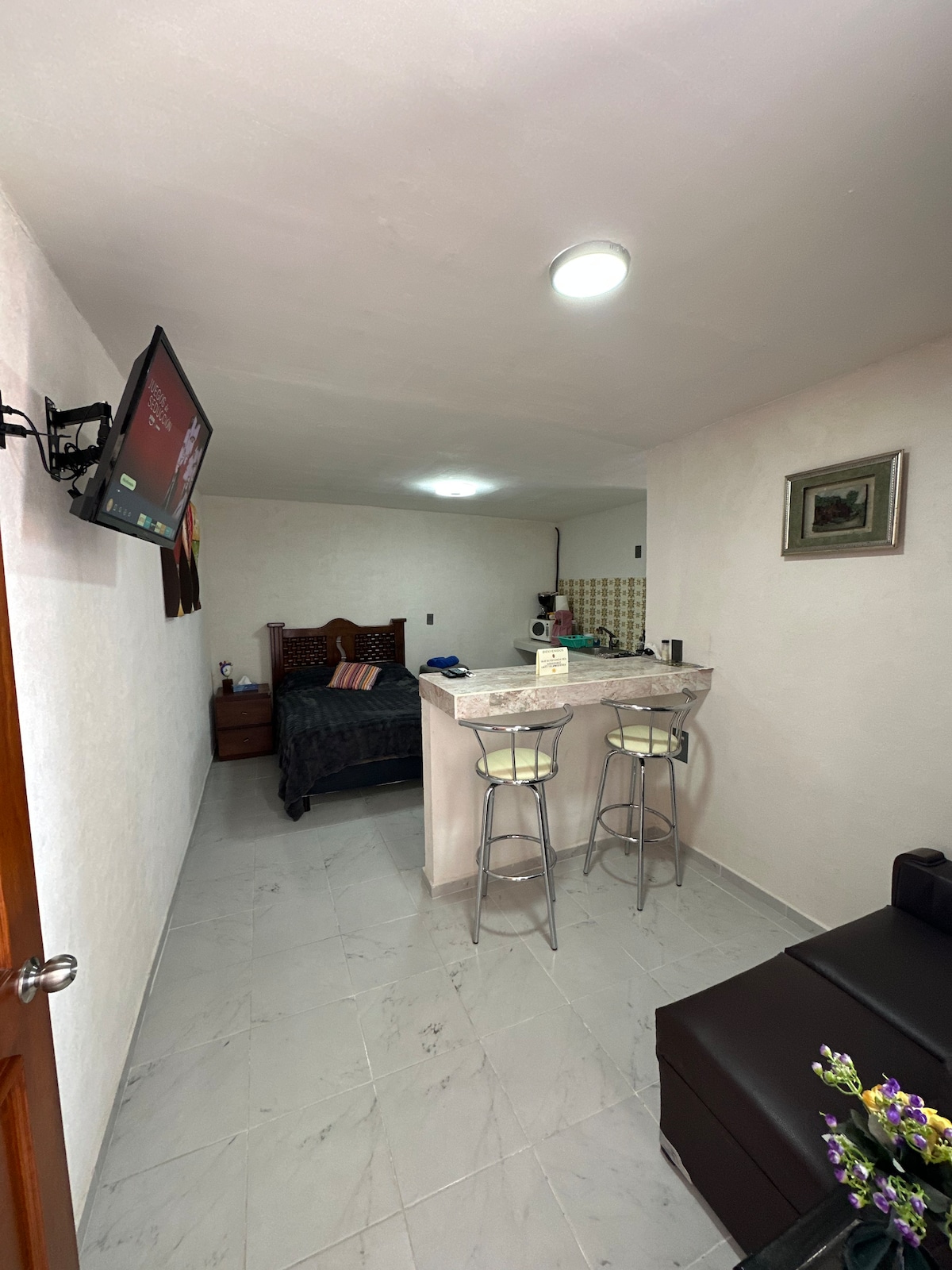 "रहने के लिए और शहर में अपने ठहरने का पूरा आनंद लेने के लिए एक शानदार जगह। पाचुका के मेले से 20 मिनट की पैदल दूरी पर। Pachuca के सबसे प्रसिद्ध संग्रहालय, एल Rehilete संग्रहालय के सामने स्थित है, जहाँ आप अतीत की यात्रा कर सकते हैं और शानदार डायनासोर देख सकते हैं। इस अपार्टमेंट में किंग साइज़ बेड है। यहाँ एक किचन है, जहाँ आप अपने कपड़े, कटलरी, प्लेट और गिलास, माइक्रोवेव धो सकते हैं। बाथरूम में आपको तौलिए, एक ड्रायर मिलेगा। कॉमन जगह पर बिस्तर और एक टीवी "