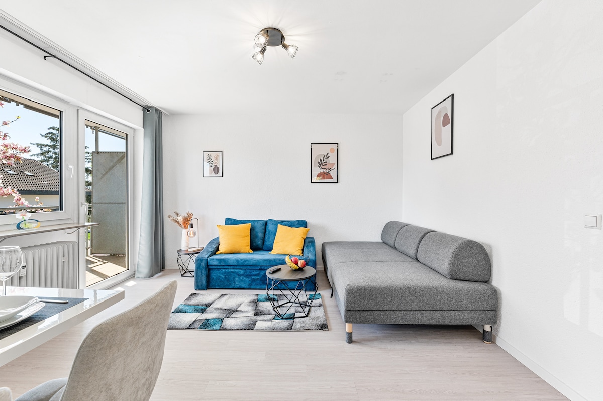 Das Apartment in modernem Design verf├╝gt ├╝ber alles, was du dir f├╝r einen entspannten Aufenthalt w├╝nschst, ger├дumig, zentral, gem├╝tlich und mit einem sch├╢nen Balkon тЖТ 1 x Boxspringbett. 180x200 тЖТ 2 x zus├дtzliche Schlafcouch 190x140 тЖТ 1 x Schreibtisch und schnelles Internet тЖТ 2 x Smart TV mit NETFLIX тЖТ vollausgestattete K├╝che тЖТ NESPRESSO Kaffee тЖТ Wasserkocher тЖТ F├╢n тЖТ BAHN - Anbindung zum Flughafen Stuttgart/ HBF Stuttgart, 7 Gehminuten zum Bahnhof
