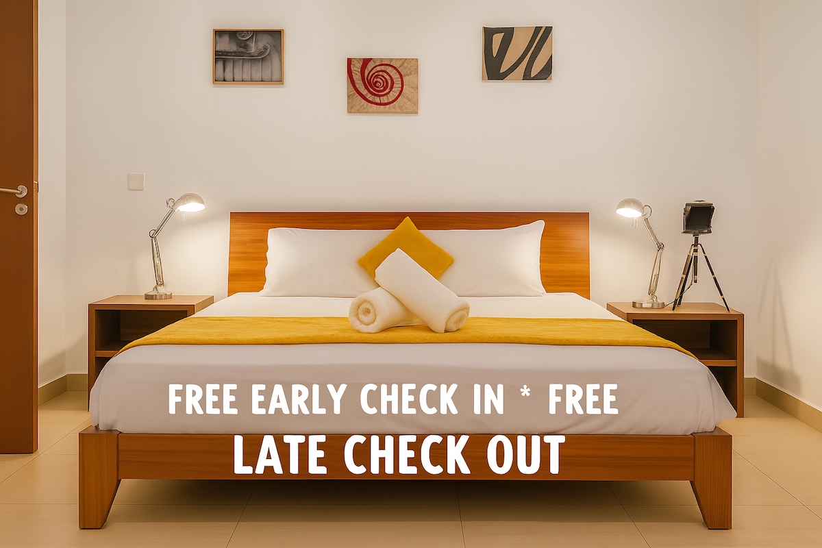 डोरेन डीलक्स में आपका स्वागत है, लेकसाइड, अक्रा में एक लक्ज़री 2 - बेडरूम, 2.5- बाथरूम वाला पहला फ़्लोर अपार्टमेंट है। दोनों बेडरूम सुइट में हैं, जो आराम और निजता प्रदान करते हैं। सभी उपकरणों, विशाल रहने की जगहों और आलीशान बिस्तर, सुपर - तेज़ वाई - फ़ाई और A/C के साथ एक आधुनिक किचन का आनंद लें। बैक - अप जेनसेट बिजली सुनिश्चित करता है। निजी छत पर आराम करें और आस - पास के पार्क, भोजन और सुविधाओं के साथ शांत पड़ोस का जायज़ा लें। वापस लाएँ और इस शांत, स्टाइलिश जगह में आराम करें।