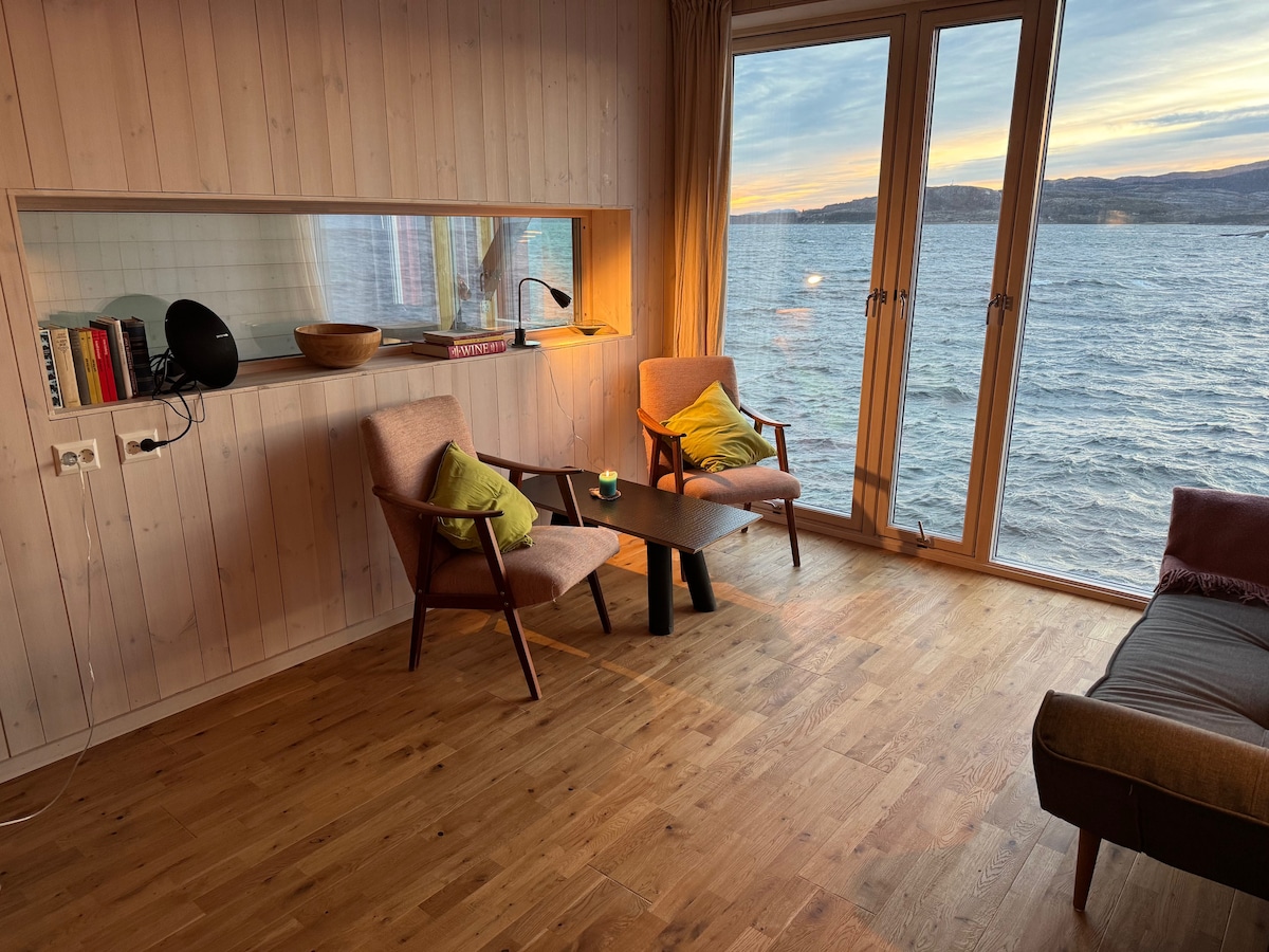 A hidden gem near Stokk├╕y Bakery and Bygdeboksen, this modern coastal cabin offers panoramic views of the Atlantic. With one bedroom, a stylish bathroom, and an open living space that flows onto a terrace, itтАЩs the perfect retreat for two or three. Contemporary design meets raw nature тАФ just a short stroll from the beach, local food and island life at its best. Coworkingspace, bakery, sandy beach and restaurant Strandbaren just minutes away.