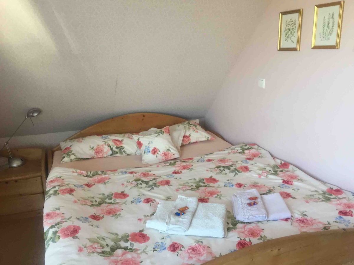 इस खास और शांत जगह में आराम करें। शानदार जंगलों और बालकनी से या सभी खिड़कियों से अनोखे नज़ारे का आनंद लें, बहुत उज्ज्वल, नई इमारत। पूरे अपार्टमेंट में अंडरफ़्लोर हीटिंग और फ़ायरप्लेस है। बच्चों या एक और व्यक्ति के लिए सोने का सोफ़ा। एक छोटे से गाँव के बाहरी इलाके में। कुदरत के अनुकूल प्रॉपर्टी (4500 वर्गमीटर)जिसमें अलग - अलग जगहों पर ग्रिल लगाने और बाहर रहने और उनका इस्तेमाल करने की संभावना है। अगले दरवाज़े पर हॉलिडे होम स्वाबियन फ़ॉरेस्ट है।