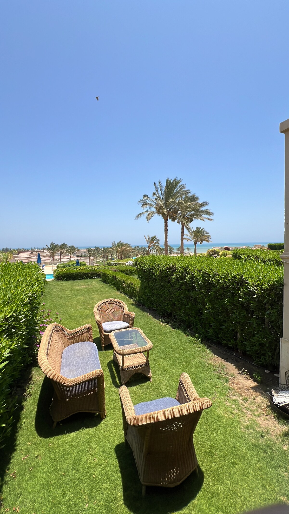 Enjoy hotel services, ground floor studio room chalet with a Bathrooms and AC; just 5KM from rassedr town and all restraunts provide delivery, compound has 3 pools and the best sandy beach suitable for family and friends to create unique memories.