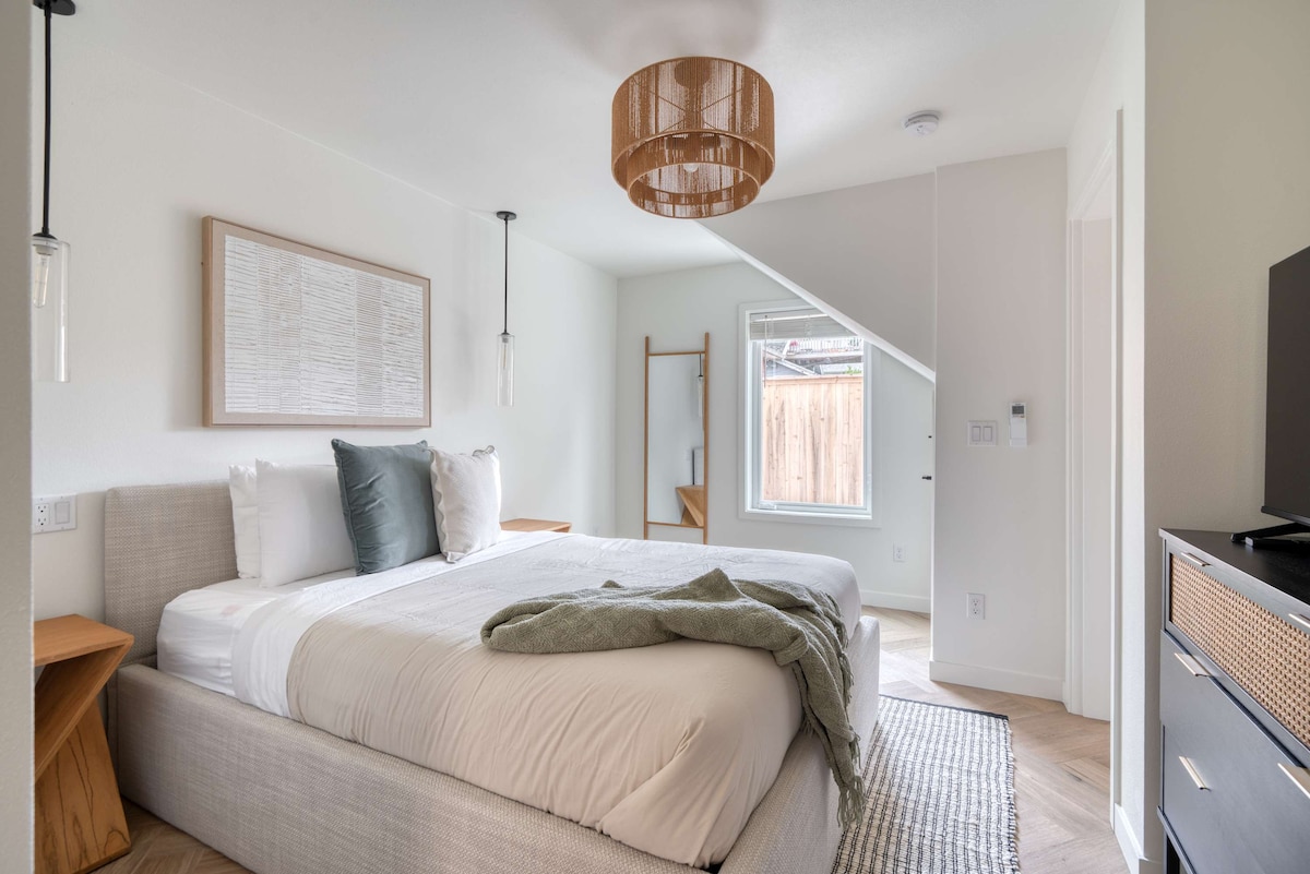рд╣рдорд╛рд░рд╛ рд╣рд╛рд▓ рд╣реА рдореЗрдВ рдмрдирд╛рдпрд╛ рдЧрдпрд╛, рд╣рд▓реНрдХрд╛ рднрд░рд╛ рд╣реБрдЖ рдФрд░ рд╡рд┐рд╢рд╛рд▓ ADU рд╣рдорд╛рд░реЗ рдкреАрдЫреЗ рдХреЗ рдЖрдБрдЧрди рдореЗрдВ рдФрд░ рдореЗрд░реЗ рдкреЗрдВрдЯрд┐рдВрдЧ рд╕реНрдЯреВрдбрд┐рдпреЛ рдХреЗ рдКрдкрд░ рдЪреБрдкрдЪрд╛рдк рдмреИрдард╛ рд╣реБрдЖ рд╣реИред рдпрд╣ рдПрдХ рдЦреБрд▓рд╛, рд╣рд╡рд╛рджрд╛рд░ рдФрд░ рдЖрдзреБрдирд┐рдХ рдЕрдЯрд╛рд░реА рд╢реИрд▓реА рдХрд╛ рдШрд░ рд╣реИ, рдЬрд┐рд╕рдореЗрдВ рдлрд╝рд┐рд░ рдлрд╝рд░реНрд╢, рд╢реЗрд▓реНрдлрд╝рд┐рдВрдЧ, рдШрдордВрдб рдФрд░ рджрд░рд╡рд╛рдЬрд╝реЗ рд╣реИрдВред рдХреНрд╡реАрди рд╕рд╛рдЗрдЬрд╝ рдмреЗрдб рдореЗрдВ рдПрдХ рд╕реБрдкрд░ рдЖрд░рд╛рдорджрд╛рдпрдХ рдкреНрд░рд╛рдХреГрддрд┐рдХ рд▓реЗрдЯреЗрдХреНрд╕ рдлреЛрдо рдЧрджреНрджрд╛ рд╣реИ рдФрд░ рд▓реЙрдлрд╝реНрдЯ рдореЗрдВ рдПрдХ рдлрд╝реЛрд▓реНрдб рдЖрдЙрдЯ рд╕реЛрдлрд╝рд╛ рд╣реИ рдЬрд┐рд╕рдореЗрдВ рдПрдХ рдкреВрд░реНрдг рдЖрдХрд╛рд░ рдХрд╛ рдореЗрдореЛрд░реА рдлреЛрдо рд╕реНрд▓реАрдкрд┐рдВрдЧ рдкреИрдб рд╣реИред рдЗрд╕рдореЗрдВ рдЖрдкрдХреЗ рдЗрд╕реНрддреЗрдорд╛рд▓ рдХреЗ рд▓рд┐рдП рдПрдХ рдЕрдЪреНрдЫреА рддрд░рд╣ рд╕реЗ рдирд┐рдпреБрдХреНрдд рдХрд┐рдЪрди рдФрд░ рд╡реЙрд╢рд░ рдФрд░ рдбреНрд░рд╛рдпрд░ рд╣реИред рдореИрдВ рдЖрдкрдХреЗ рдард╣рд░рдиреЗ рдХреЗ рд▓рд┐рдП рдХреЙрдлрд╝реА рдФрд░ рдЪрд╛рдп рднреА рджреЗрддрд╛ рд╣реВрдБред