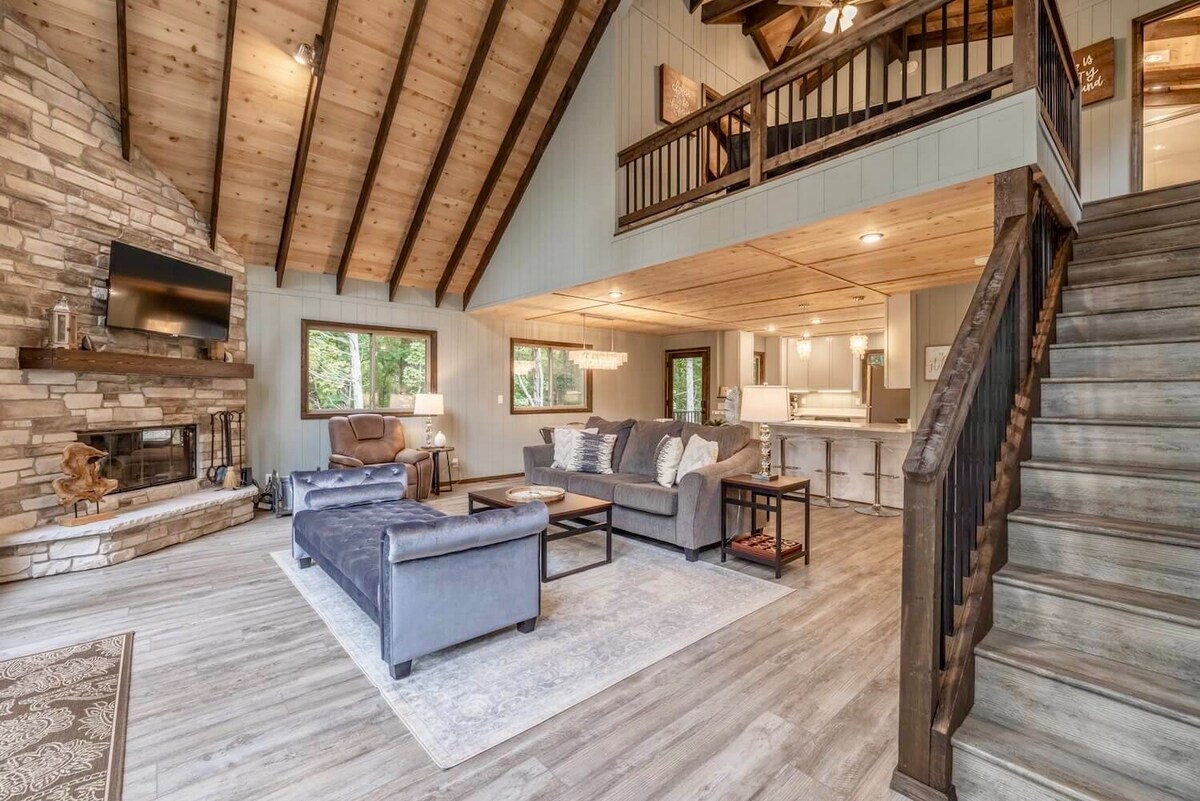फ़ॉक्सफ़ायर लेक के सामने वाले जंगलों में बसा यह A-फ़्रेम साल के चारों मौसम में आनंद लेने के लिए एकदम सही है। जब बर्फ़ गिरती है, तो यह सर्दियों के लिए एक बेहतरीन ठिकाने में तब्दील हो जाती है। पत्थर की फ़ायरप्लेस के पास आराम करें, जहाँ झील के नज़ारे बर्फ़ से ढके पेड़ों से घिरे होते हैं। जैसे-जैसे मौसम गर्म होता है, झील की ओर लोगों का रुझान बढ़ता है! हमारे निजी डॉक से फ़ॉक्सफ़ायर लेक के सीधे ऐक्सेस का आनंद लें। मछली पकड़ते हुए, तैरते हुए या बस धूप में बैठकर अपना दिन बिताएँ। यह शैले आपको हर मौसम में खुशी और आराम देने में मदद करेगा।