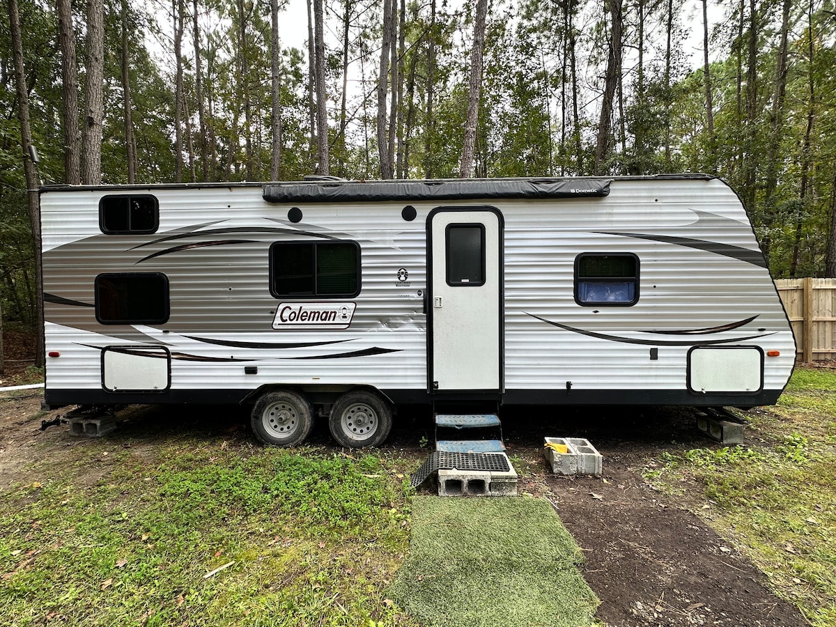 Located just 30 miles from the sites of Savannah, our spot is prime for both exploring adventures in the hostess city while enjoying the simple comforts of country living. Nestled beyond an oak lined entrance, your private space tucked away at the back of 1.60 acres of wide open space awaits you. Expect mornings with the eastern blue birds and robins and count on relaxing evenings inside the state of the art RV on the fireside recliners or outside by the flames of the crackling fire pit.