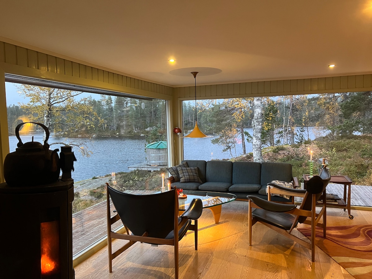 Lad batteriene på dette unike og rolige overnattingsstedet. Den arkitekttegnede Hytta ligger rett i vannkanten. Langt fra naboer. Våkn opp til beveren som svømmer forbi, utforsk fuglelivet, fisk din egen middag og nyt stillheten. Hytta leies ut med enkel båt og kano. Det medfølger fiskerett. Privat vei helt frem til døren.«Off grid» med solcelleanlegg, god wifi. Vann må bringes inn. Vann til mat og drikke må tas med. Gass til koketopp og grill. brennetoalett og dusj utendørs med oppvarmet vann.