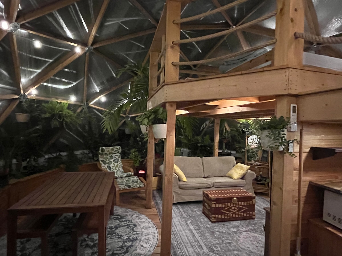 बर्लिंगटन के एक फ़ार्म पर जंगल का गुंबद! हमारे 500 वर्ग फुट के जियोडेसिक गुंबद "ग्लैम्पिंग" ग्रीनहाउस आवास में एक उष्णकटिबंधीय ठहरने का आनंद लें! 4 लोगों के सोने की जगह। इसमें एक मछली और कछुए का तालाब है और यह ट्रॉपिकल पौधों से भरपूर है! जब आप उष्णकटिबंधीय क्षेत्रों में नहीं जा सकते हैं, तो इसे उष्णकटिबंधीय छुट्टियों की जगह के रूप में डिज़ाइन किया गया है! यह 5 एकड़ के पशु फ़ार्म पर स्थित है, जहाँ मेहमान बकरियों, घोड़ों, हाइलैंड गायों, भेड़ों, सूअरों और पोल्ट्री को खिला सकते हैं और उनके साथ बातचीत कर सकते हैं। पशु प्रेमियों का सपना!