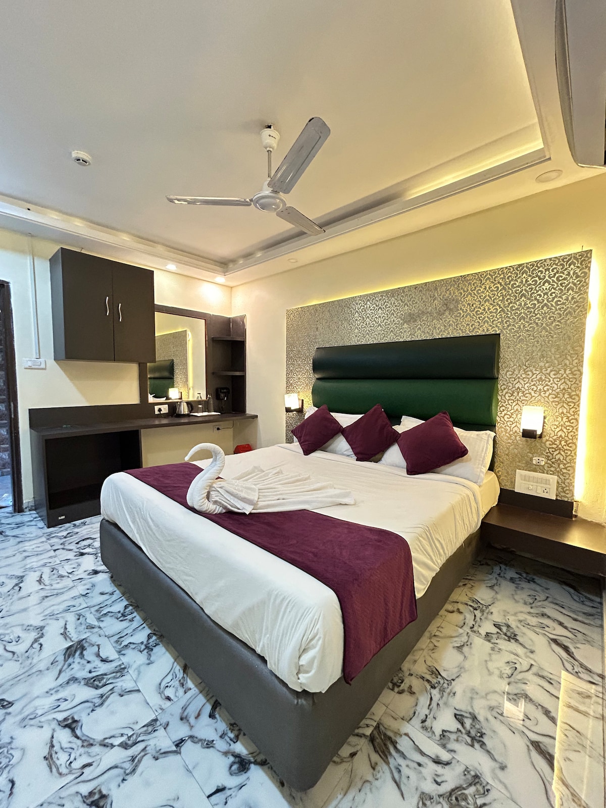 рдЖрдк рдард╣рд░рдиреЗ рдХреА рдЗрд╕ рдордирдореЛрд╣рдХ рдЬрдЧрд╣ рд╕реЗ рдордВрддреНрд░рдореБрдЧреНрдз рд╣реЛ рдЬрд╛рдПрдБрдЧреЗред рдпрд╣ рдПрдХ рдлрд╝реИрдорд┐рд▓реА рд╕реВрдЯ рд╣реИ, рдЬрд┐рд╕рдореЗрдВ 02 рд╡рд┐рд╢рд╛рд▓ рдмреЗрдбрд░реВрдо рд╣реИрдВ, рдЬреЛ рдХрд┐рдВрдЧ рд╕рд╛рдЗрдЬрд╝ рдмреЗрдб рдХреЗ рд╕рд╛рде рдПрдХ - рджреВрд╕рд░реЗ рд╕реЗ рдЬреБрдбрд╝реЗ рд╣реБрдП рд╣реИрдВ рдФрд░ рд╣рд░ рдХрдорд░реЗ рдореЗрдВ рдЯреАрд╡реА, рдПрд╕реА, рд╡рд╛рд░реНрдбрд░реЛрдм, рд╕реЗрдВрдЯрд░ рдЯреЗрдмрд▓ рдЬреИрд╕реА рд╕рднреА рдмреБрдирд┐рдпрд╛рджреА рд╕реБрд╡рд┐рдзрд╛рдПрдБ рд╣реИрдВред рдЧреАрдЬрд╝рд░ рдХреЗ рд╕рд╛рде 01 рдирд┐рдЬреА рдмрд╛рдерд░реВрдо рд░рдЦреЗрдВред рд╣рд░ рдмреЗрдб рдореЗрдВ рдПрдХ рдХреНрд╡рд╛рд▓рд┐рдЯреА рдХрд╛ рдЧрджреНрджрд╛ рдФрд░ рд▓рд┐рдирди рд╣реЛрддрд╛ рд╣реИред 4 рд▓реЛрдЧреЛрдВ рдХреЗ рдкрд░рд┐рд╡рд╛рд░ рдореЗрдВ рдЖрд░рд╛рдо рд╕реЗ рд░рд╣ рд╕рдХрддреЗ рд╣реИрдВред рдПрдХ рдЕрддрд┐рд░рд┐рдХреНрдд рдмрдЪреНрдЪреЗ рдХреЛ рднреА рд╕рдорд╛рдпреЛрдЬрд┐рдд рдХрд░ рд╕рдХрддреЗ рд╣реИрдВред