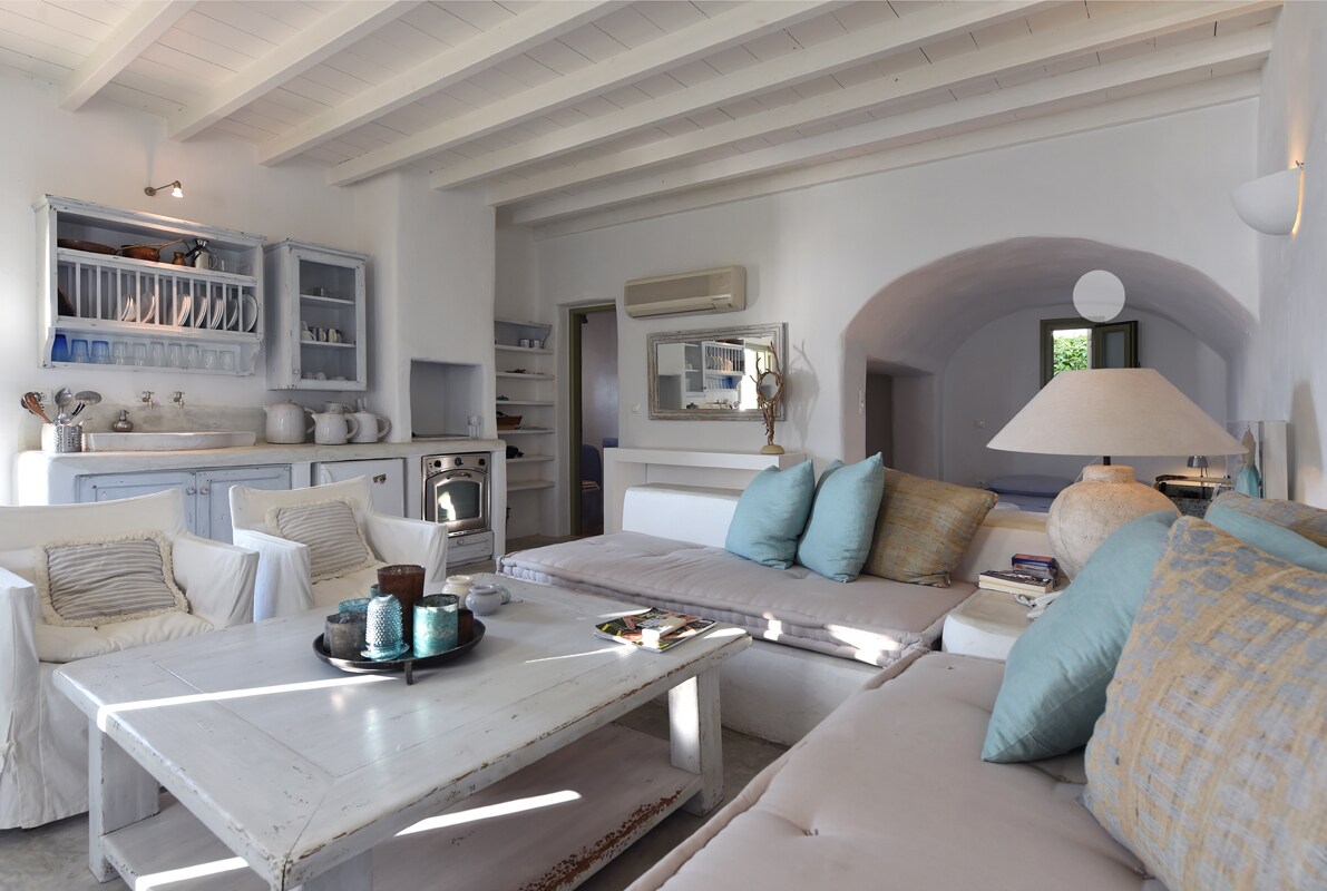 This Island Suite is an inextricable part of "Georgilas Cave House". At the time when GCH was a lively farm, тАЬRosy IpostatikoтАЭ; along with its twin "Velvet Ipostatiko", were serving as warehouses for the storage of the farm's production. Today, they have been converted into two picturesque Cycladic studios, which can perfectly accommodate couples which seek romance, relaxation, privacy and comfort, as well as young parents!