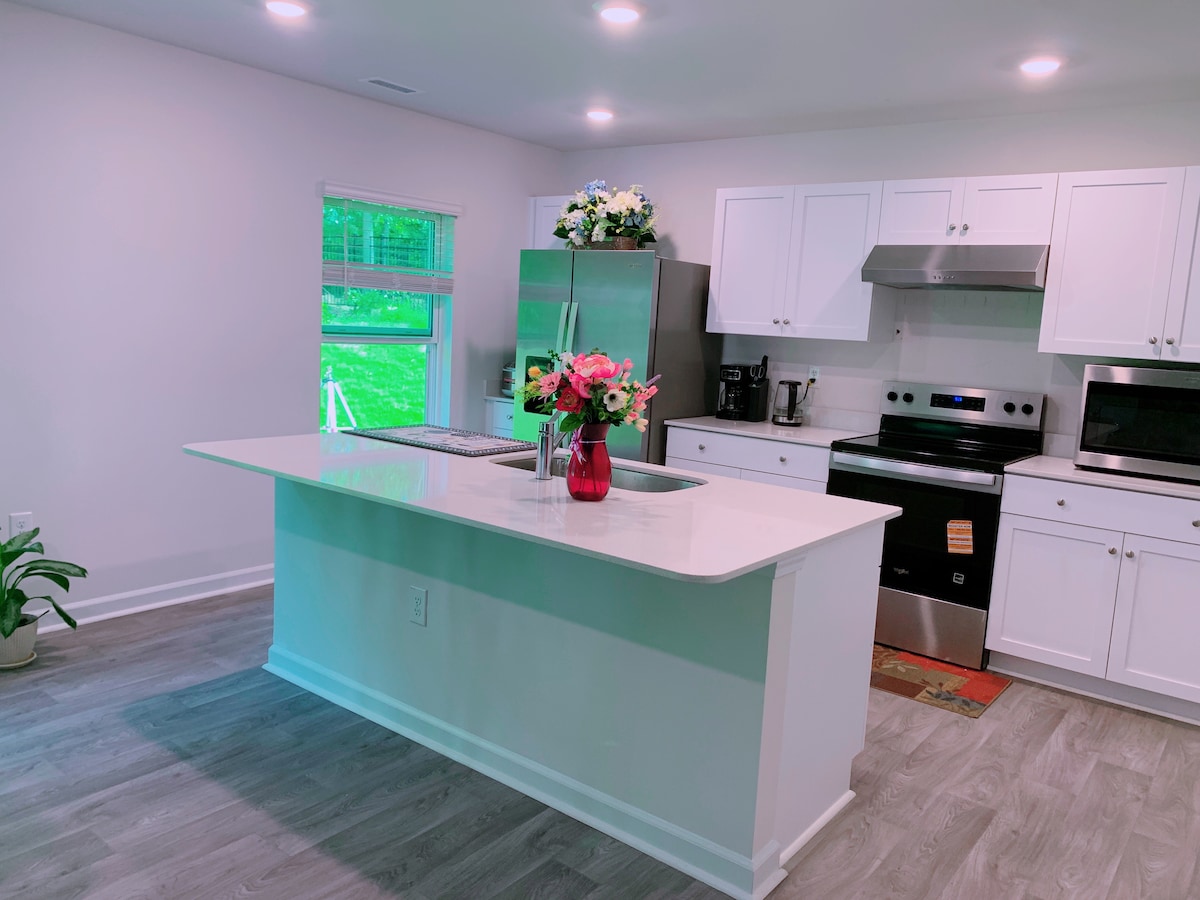 दो आरामदायक बेड वाला विशाल, खूबसूरत कमरा, होटल के स्तर के अनुभव का आनंद लेने के लिए 65 इंच का टीवी, चाहे आप व्यावसायिक यात्रा पर हों या अवकाश की छुट्टी पर हों, यह आपके लिए आराम करने के लिए एकदम सही जगह है।पूरे परिवार को इस शानदार जगह पर लाएँ और अच्छी क्वालिटी की बुकिंग का मज़ा लें। बस स्टॉप घर से 2 मिनट की पैदल दूरी पर है और यह रैले शहर से 10 मिनट की ड्राइव पर है।