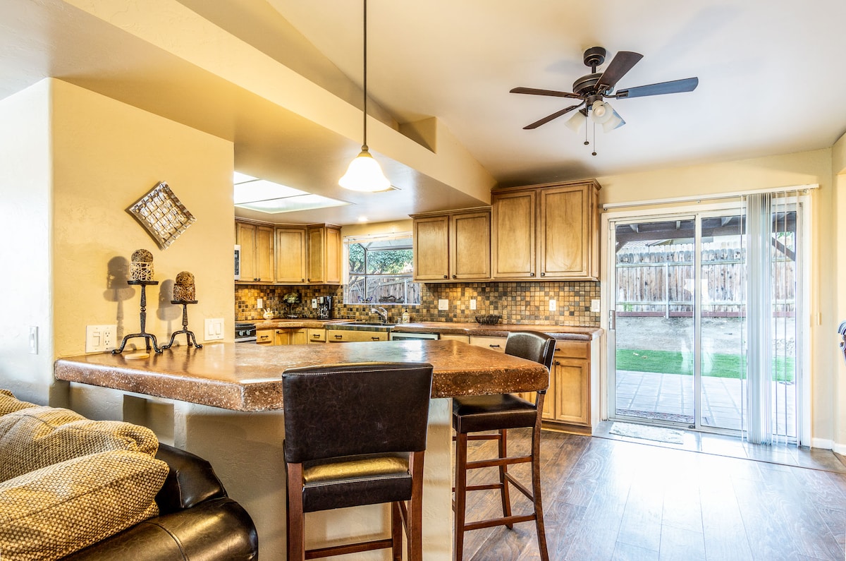 इस शांत रेगिस्तान रिट्रीट में एक बड़ी रसोई, 3 बेडरूम, 2 पूर्ण बाथरूम, 75 '' Roku TV के साथ लिविंग रूम और परिवारों के लिए एक साथ रहने और सप्ताहांत का आनंद लेने के लिए एकदम सही एक बड़ा खेल कमरा है। ** ब्रूस्टर पार्क ** उन एथलीट के लिए एकदम सही जगह है जिनके पास पार्क में खेल हैं! इसके अलावा सिविक सेंटर पार्क से 6 मिनट और सेंट मैरी मेडिकल सेंटर से 9 मिनट की दूरी पर। आस - पास कई स्थानीय सुविधाएँ!