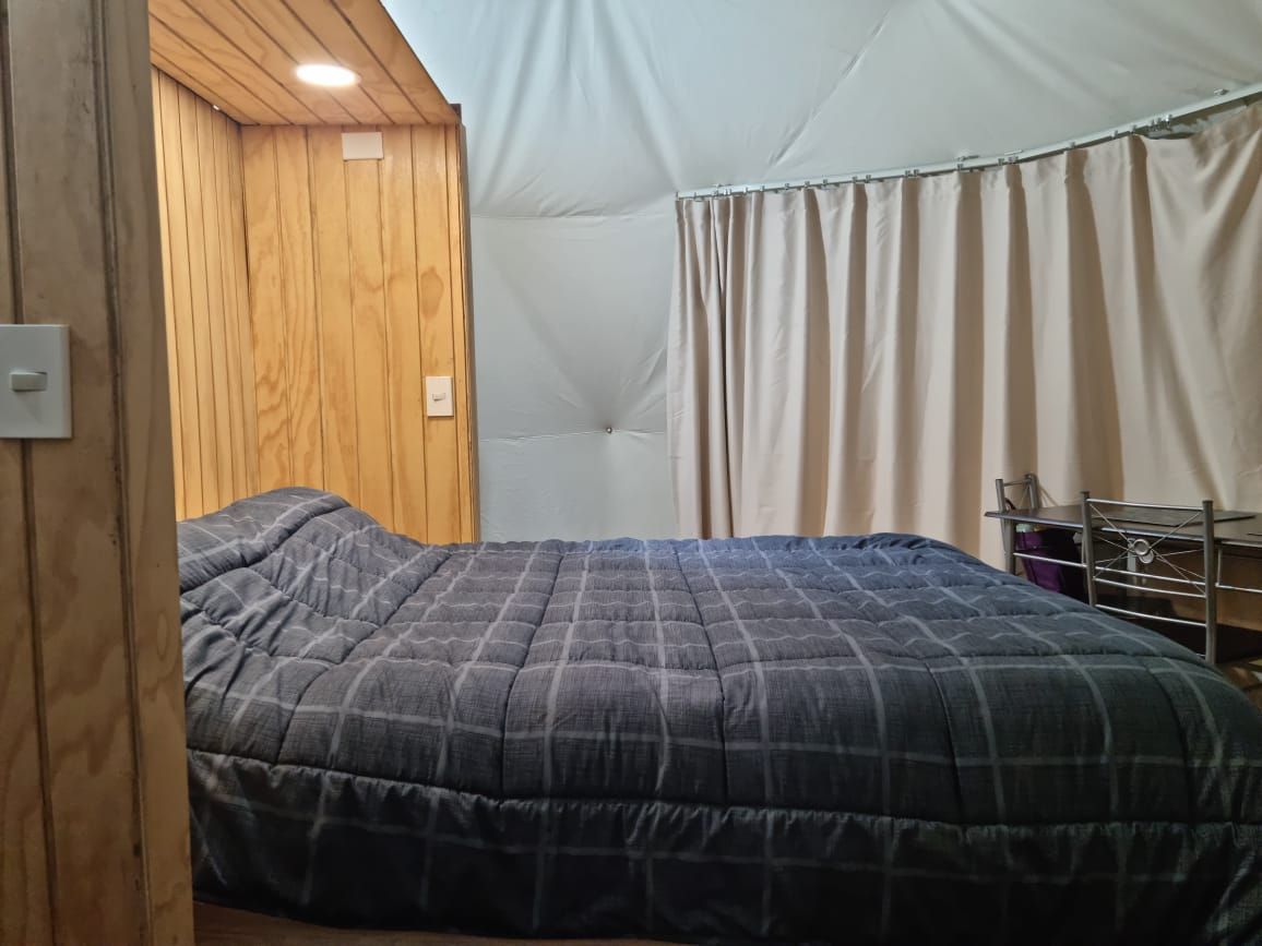 Glamping Vista Mehuín प्रकृति के साथ एक करीबी और वास्तविक अनुभव प्रदान करता है। यहाँ, बारिश की आवाज़ में कोई खराबी नहीं है — आप इसे महसूस करते हैं, इसे सुनते हैं, और यह आपको साथ रखता है। कैनवास की संरचना एक पारंपरिक केबिन की तरह इन्सुलेट नहीं करती है, लेकिन यह आपको परिवेश से गहराई से जोड़ती है: समुद्र, हवा और स्थानीय वन्य जीवन। इसमें हीटिंग, एक निजी बाथरूम और समुद्र के किनारे एक दिन बिताने के बाद आराम करने के लिए एक आरामदायक बिस्तर है। हॉट टब के इस्तेमाल पर 35.000 CLP का अतिरिक्त खर्च आता है।