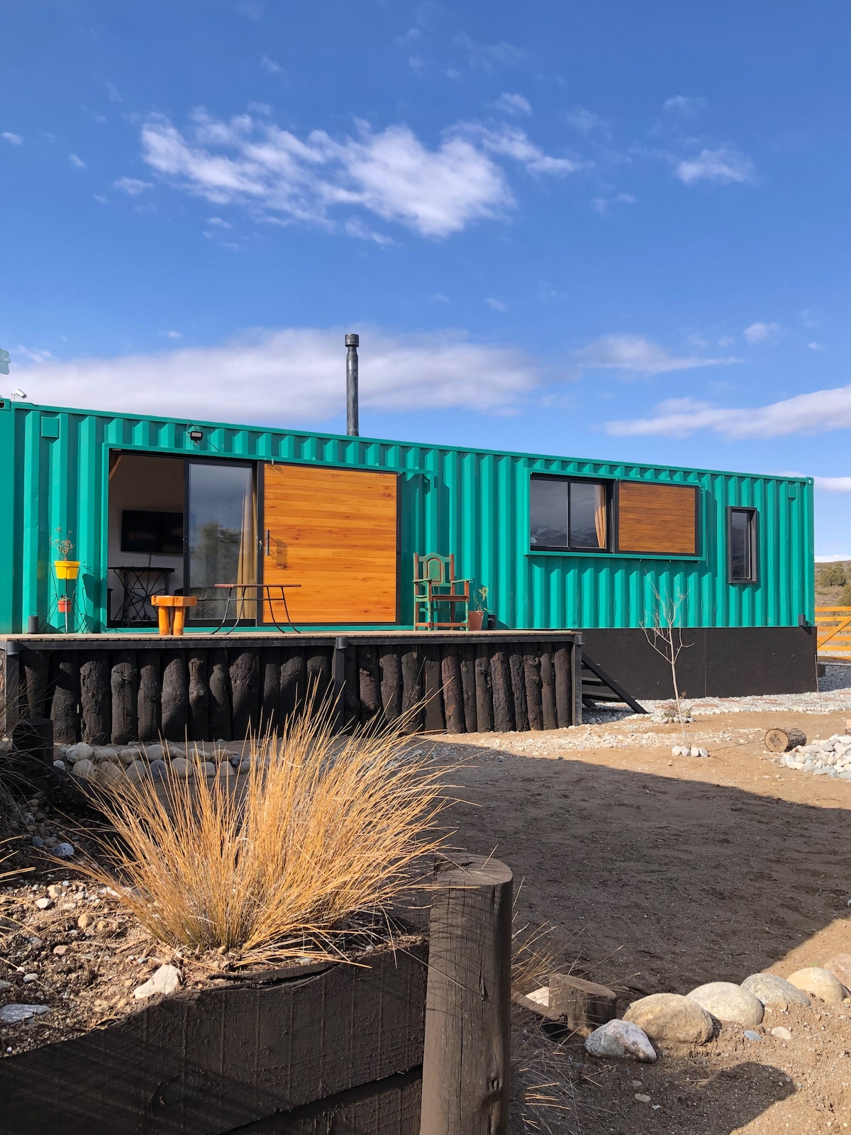 कुदरत की शांति का अनुभव करें और एक अपसाइक्ल्ड शिपिंग कंटेनर में अपने बिस्तर से मनमोहक नज़ारों का मज़ा लें। नेशनल पार्क लॉस ग्लेशियर के पास, हम उत्तरी हेडट्रेल से लगूना डे लॉस ट्रेस (फ़िट्ज़ रॉय) के पास हैं, जो एल चैटन से केवल 15 किमी दूर है और मूल पैटागोनियन जंगल से घिरा हुआ है। कुछ दिनों के लिए, आप छोटे, आरामदायक और आवास पर लगभग शून्य प्रभाव के साथ रह सकते हैं! बाइक मुफ़्त में उपलब्ध हैं। जिन लोगों के पास कार नहीं है, उनके लिए हम उपलब्धता के आधार पर सुविधाजनक पिक - अप सेवा ऑफ़र करते हैं।