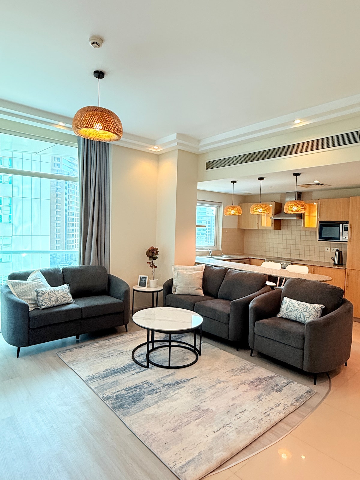 Experience modern comfort and breathtaking skyline views in this stylish one-bedroom apartment in the heart of Bahrain. Smoking is not allowed in the hall or bedroom u can smoke in balcony and loud music not allowed Designed with elegant neutral tones, warm lighting, and contemporary d├йcor тАФ Enjoy your morning coffee overlooking the city or unwind at night with stunning lights right from your balcony. Ideal for business travelers, couples, or weekend getaways.