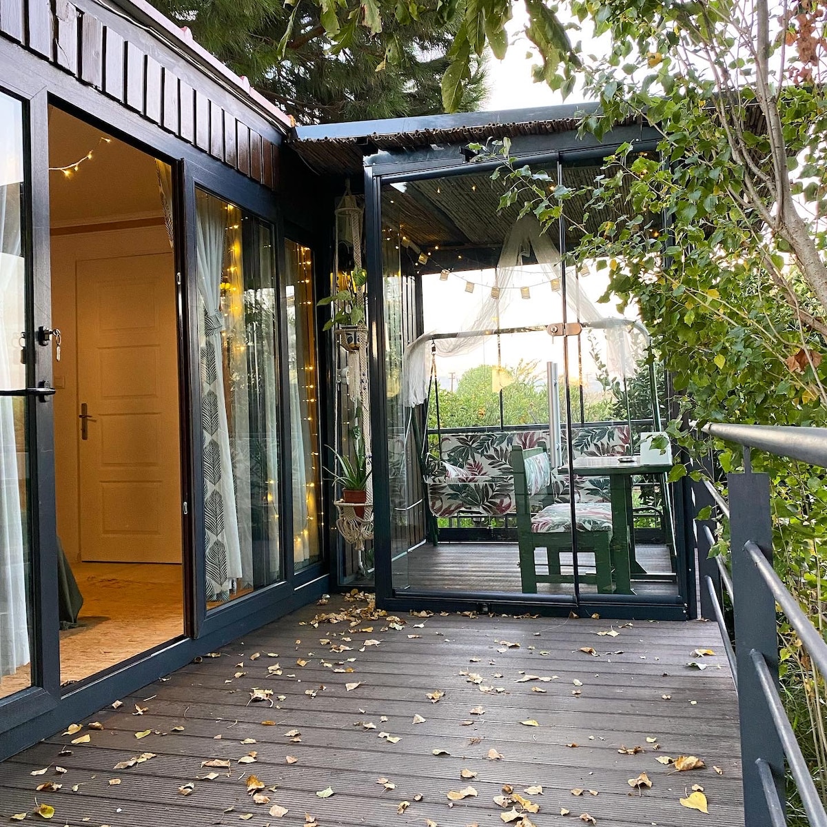7 min walk to Seferihisar center; 5 min by car to Akarca & Akkum beaches, Teos Ancient City, the Marina and Kalei├зi. Surrounded by mandarin fields, and 24/7 hot water. The private area is a camellia in summer and a closed winter garden with a fireplace stove in winter. Shared kitchen & BBQ. Pet-friendly, fenced, safe and family-friendly.