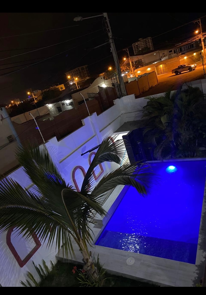Hermosa casa en Ballenita, Santa Elena, Ecuador , a dos cuadras de la tropical playa de Ballenita y a 5 cuadras de supermercado y gasolinera. Podrán relajarse en una casa con todos los servicios como piscina,jacuzzi, parrilla, horno de leña, mesa de pin pon, aires acondicionados en todas las habitaciones. Cuenta con wifi, alarma y respuesta armada Para su completo descanso, el servicio doméstico está incluido