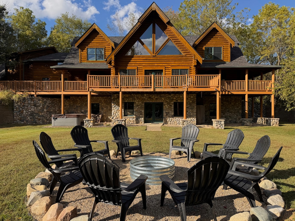 6BR Log Cabin | King Ensuites | Hot Tub | 8 Acres