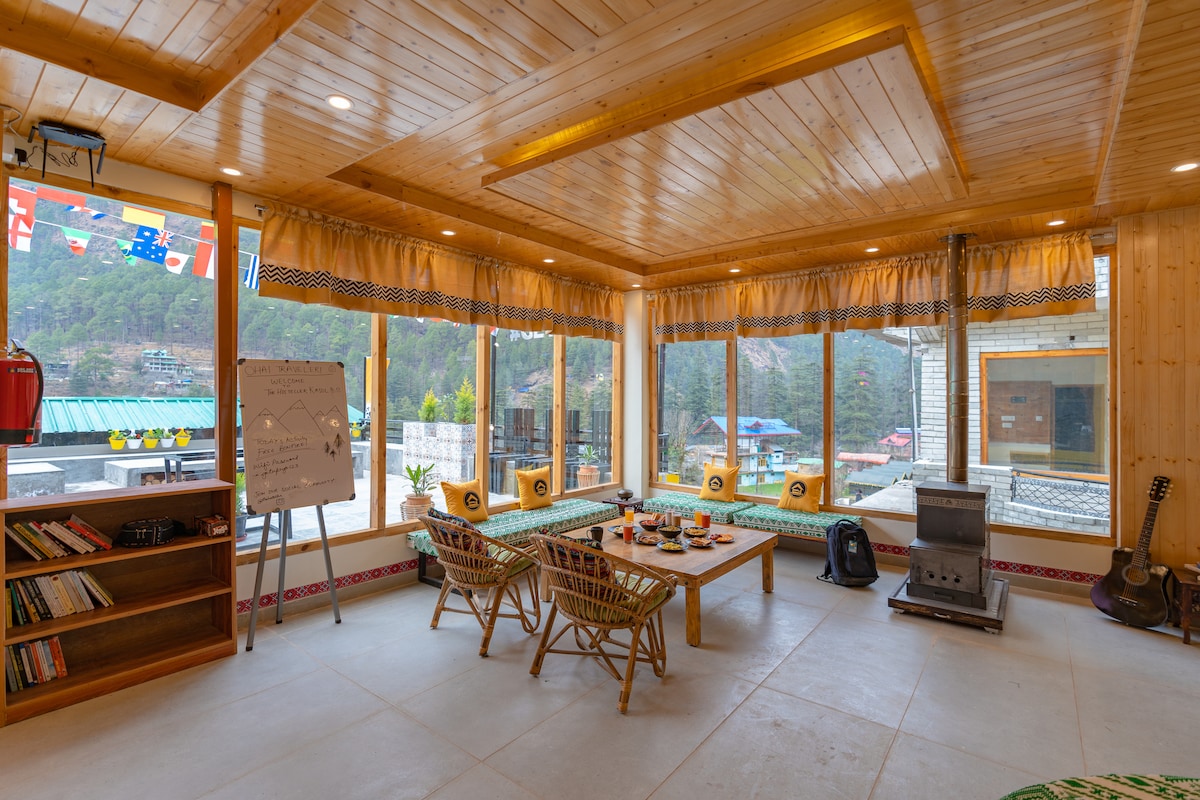 ‘भारत का मिनी इज़राइल’ अब आपको और आपके पूरे पागल दस्ते की मेजबानी करने के लिए एक तीसरा छात्रावास है। पार्वती घाटी और उसके आसपास के पहाड़ों की सख्त और शानदार पृष्ठभूमि के बीच सेट करें, हमारी संपत्ति चुनने के लिए एकदम सही छात्रावास है - चाहे आप सप्ताहांत के लिए पॉप - इन करना चाहते हैं या एक अच्छे महीने के लिए पहाड़ों में बसना चाहते हैं। बायोफिलिया की अवधारणा को ध्यान में रखते हुए निर्मित, यह छात्रावास आपको प्रकृति के साथ एक महसूस कराएगा। हॉस्टल में आपका मनोरंजन करने के लिए दो शानदार आम कमरे हैं।