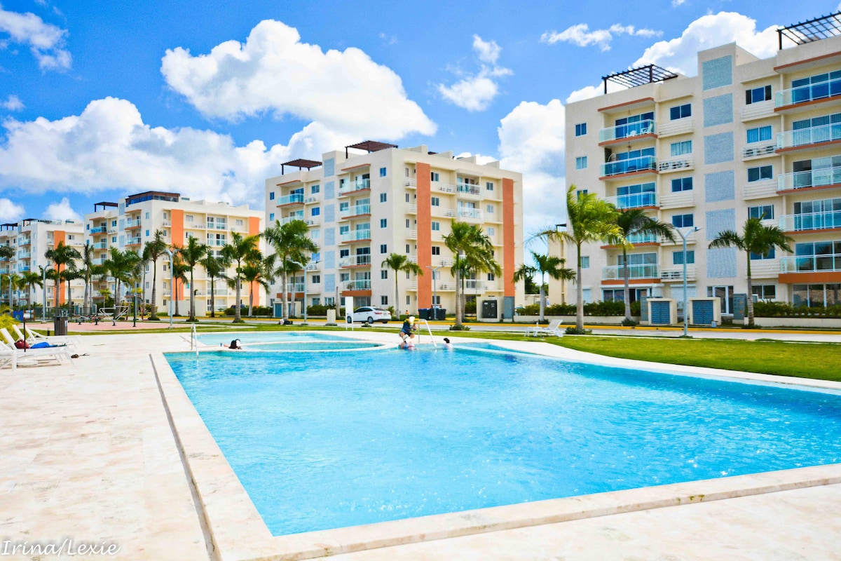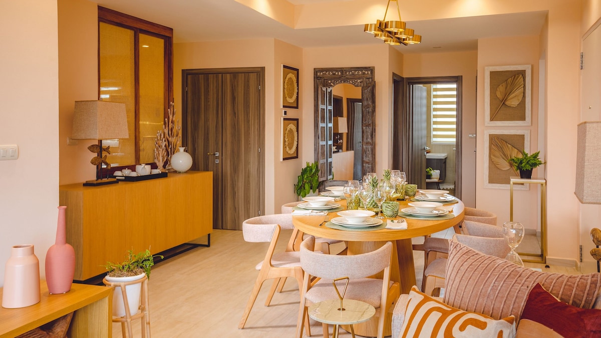 पुंटा कैना शहर से महज़ 2 मिनट की दूरी पर और PUJ एयरपोर्ट से 7 मिनट की दूरी पर मौजूद हमारे नए 5वीं मंज़िल के अपार्टमेंट में लग्ज़री का अनुभव लें। एक किंग बेड, दो ट्विन बेड (किंग में बदलने योग्य) और एक क्वीन सोफ़िया वेर्गारा सोफ़ा बेड के साथ 6 कमरे हैं। कैरिबियन के सबसे बड़े कृत्रिम समुद्र तट वाले एक निजी कॉम्प्लेक्स में 65 इंच के स्मार्ट टीवी, पूरे किचन, वाई - फ़ाई और 24 घंटे, सभी दिन सुरक्षा का मज़ा लें। किराए पर उपलब्ध कार, स्कूटर और घूमने - फिरने की जगहें (अतिरिक्त लागत)। ध्यान दें: हो सकता है कुछ निर्माण जारी रहे।