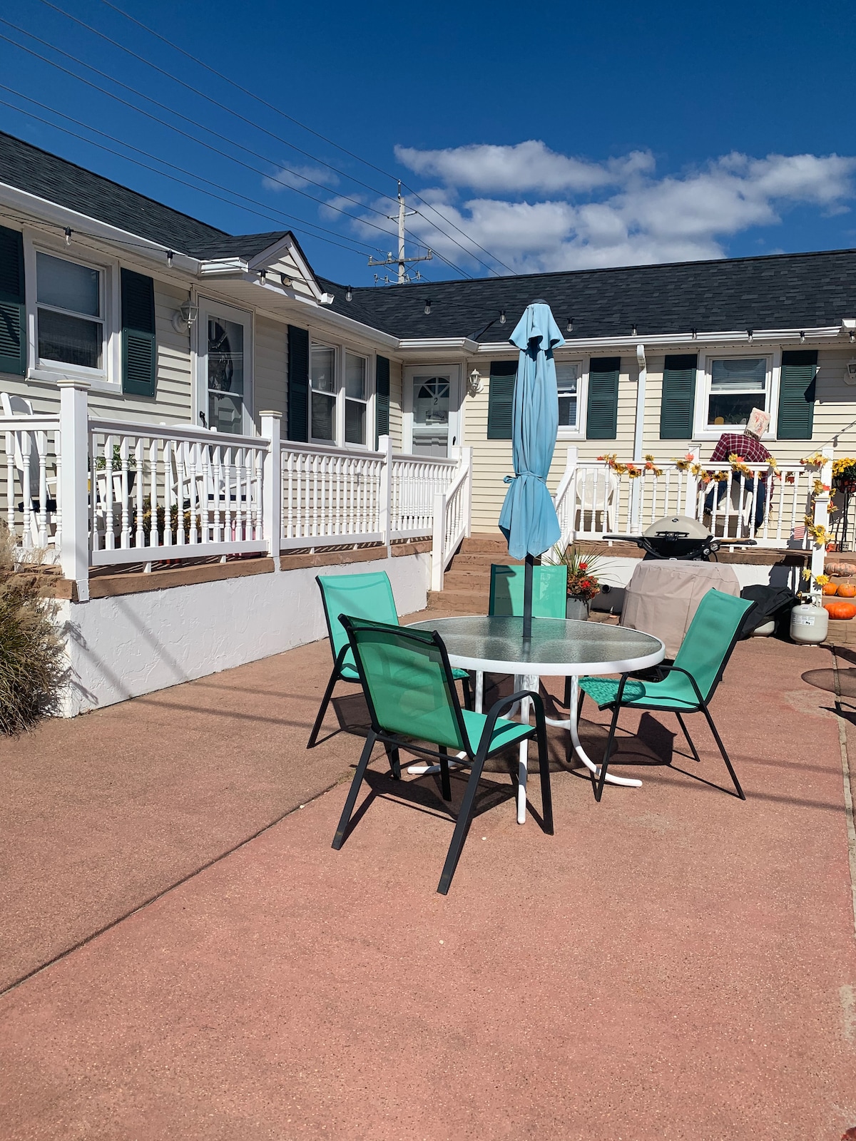 LBI, Ocean side 1br, 8 houses from the beach. Sleeps 4 with full size bed and queen sized pullout sofa in living room. Bright LR with 2 sky lights. Updated kitchen with all new cooking equipment. Outdoor shower, shared patio area with table chairs and grill. Wi-Fi, 65 in. tv.