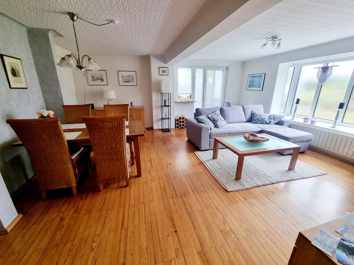 Beckingen में आपका स्वागत है! हमारा प्यार से सुसज्जित अपार्टमेंट ग्रामीण इलाकों के बीचों - बीच एक आरामदायक और शांत आवास प्रदान करता है। परिवारों, पैदल यात्रियों, साइकिल चालकों, व्यावसायिक यात्रियों या सारलैंड में छोटी छुट्टी के लिए आदर्श। आवास पूरी तरह से सुसज्जित है: - डबल बेड वाला बेडरूम, पालना (0.90 मीटर), बेबी बेड - स्मार्ट टीवी और सोफ़े वाला लिविंग रूम (2 लोगों के लिए बढ़ाया जा सकता है) - पूरी तरह से सुसज्जित किचन - मुफ़्त वाईफ़ाई - शॉवर टब और तौलिए वाला बाथरूम