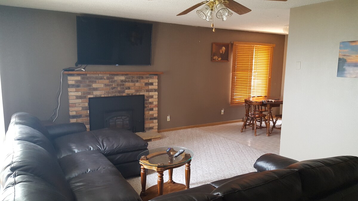 परिवार के घर के अंदर निजी प्रवेश द्वार के साथ पूरी तरह से सुसज्जित अपार्टमेंट। सुंदर यार्ड के साथ निजी पार्किंग, डेविल्स झील और नाव रैंप से कुछ ही मिनटों की दूरी पर। वॉशर/ड्रायर शामिल हैं, पूरा किचन, बेडरूम में क्वीन पिलो टॉप गद्दे, + क्वीन सोफा सोफ़े और अपडेट किए गए बाथरूम। सुविधाओं में सभी लिनन और रसोई के बर्तन शामिल हैं + मेहमानों के पास उपयोग के लिए गैस ग्रिल, डेक और पिकनिक टेबल है।
