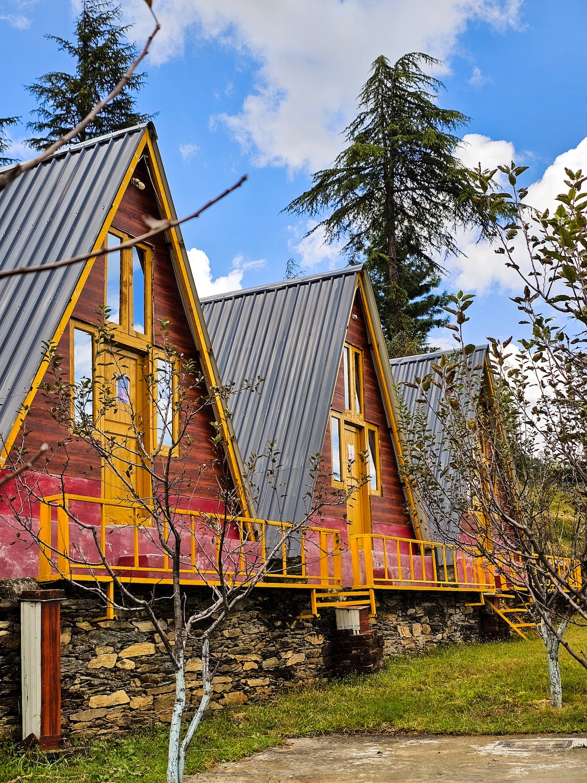 Welcome to The Wyld — 5 cozy A-frame cabins in Thata, Seraj, Tirthan Valley. Sometimes it’s magical. Sometimes it’s a little too magical. Wrapped in pine forests, apple trees, rivers, and trails, this is your escape for barefoot mornings, bonfires, and slow days that stretch in the best way. Perfect for doing nothing (beautifully) or everything (at your own pace). Come for the view, stay for the feeling.