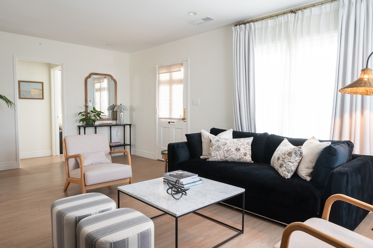 Welcome to your stay in Bird Rock, a recently renovated 2-bedroom, 1.5-bath home in a charming La Jolla neighborhood. Thoughtfully designed for comfort and style, this space is perfect for couples, families, or remote-working professionals looking to unwind near the coast. Prime Location – Walk to boutiques, restaurants, and the coastline. Elevated Design – Freshly renovated with new finishes and European inspired décor. Outdoor Living – Private landscaped yard, lounge seating, and BBQ.