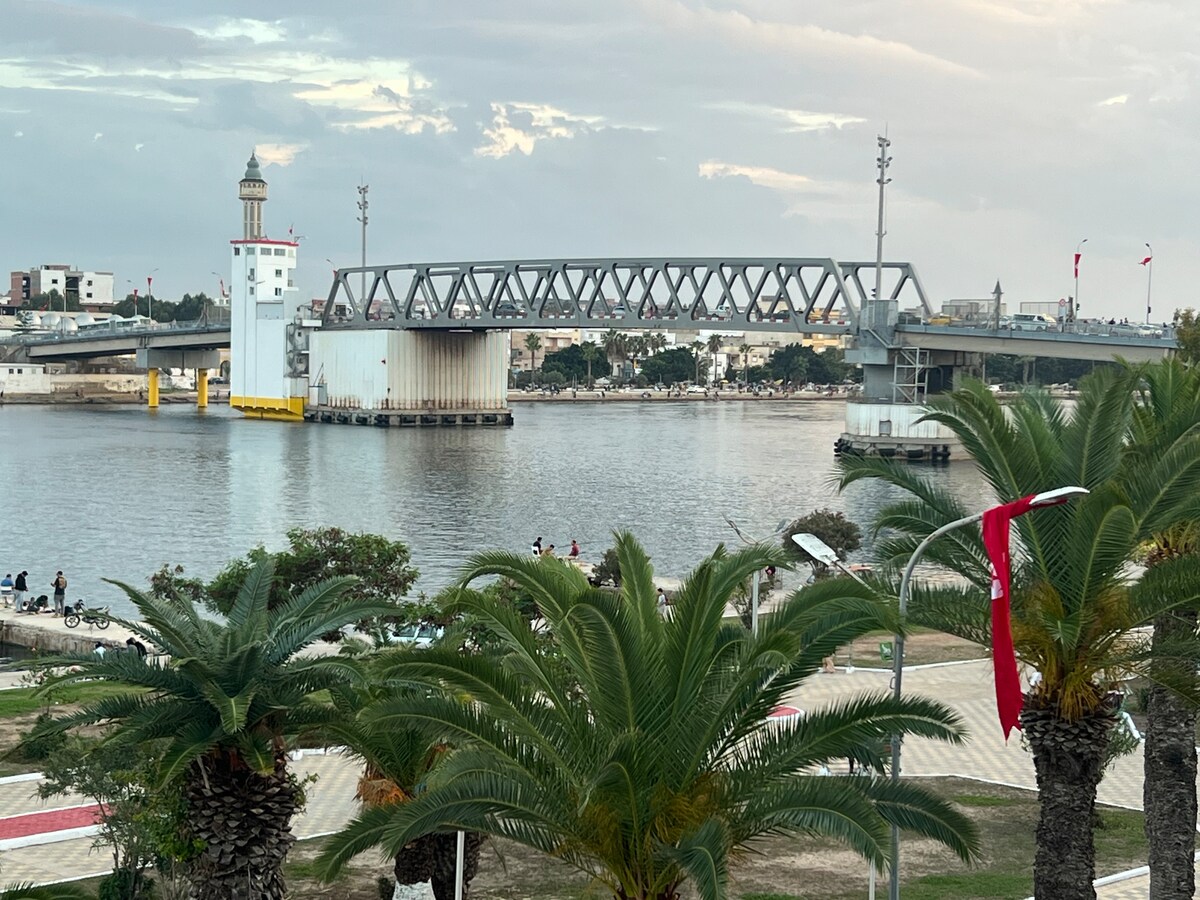 Appartement lumineux et spacieux au c┼Уur de Bizerte, ├а deux pas du vieux port, de la m├йdina et des commerces. Id├йal pour visiter Bizerte dans un cadre calme et agr├йable. Dot├й de 3 chambres, salon et salle ├а manger communiquant, cuisine ├йquip├йe, salle de bain et salle dтАЩeau. Toutes les chambres sont dot├йes de balcons et/ou fen├кtres avec vue unique sur le canal, le jardin et le pont mobile. Avec un peu de chance, vivez lтАЩexp├йrience unique de la lev├йe du pont et du passage des bateaux.