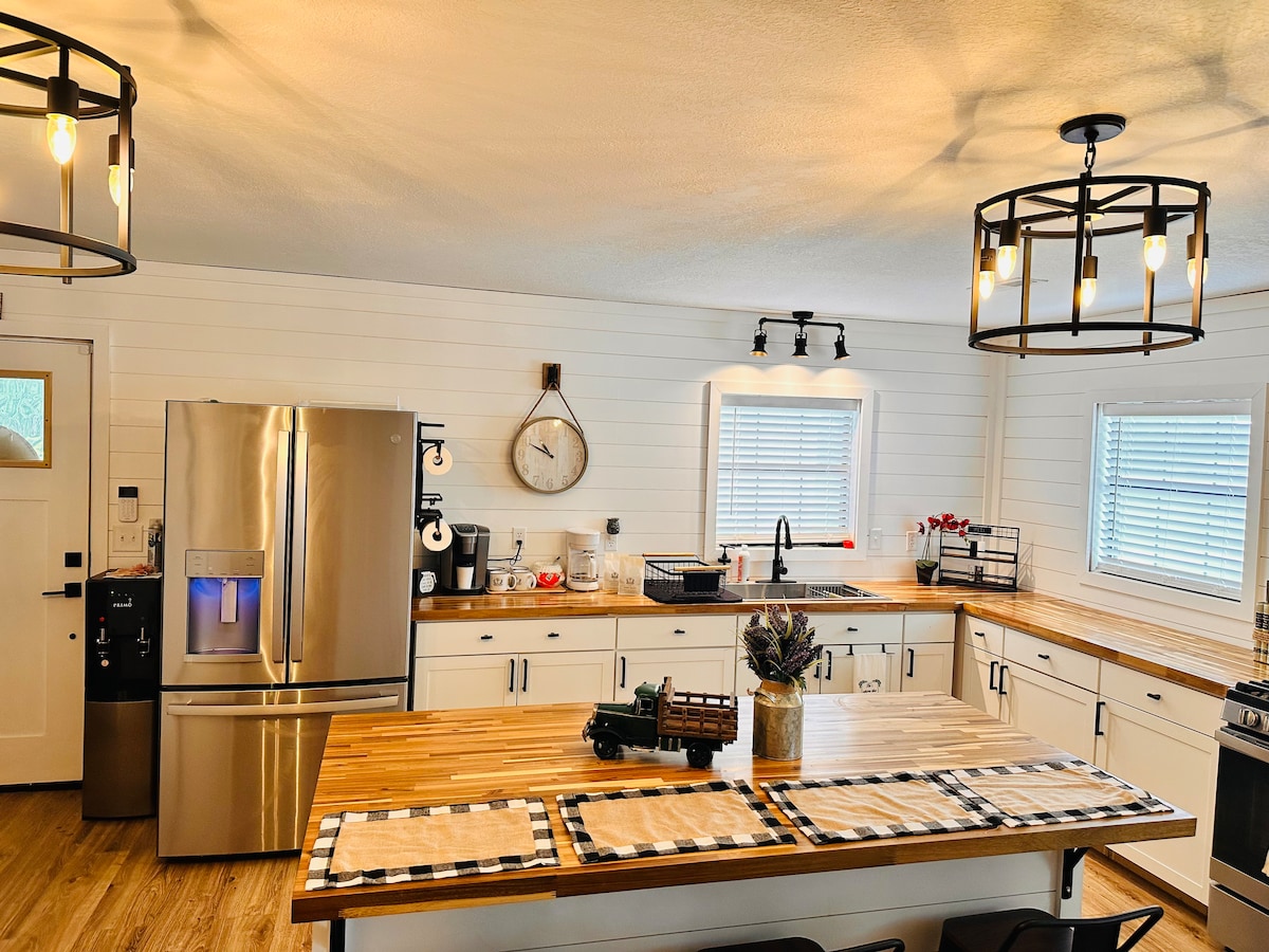 यह छोटा - सा सफ़ेद फ़ार्महाउस देश के आकर्षण से भरा हुआ है। 1920 के दशक में बनाया गया और कई बार जोड़ा गया, इसे 2017 में अंतिम समय के लिए पुनर्निर्मित किया गया था। यह घर एक खेत के बगल में हमारे फ़ैमिली फ़ार्म के किनारे मौजूद है। पास में एक खलिहान/तालाब बैठा है। यह घर 2br/2ba का है, जिसमें लिविंग रूम, ज़रूरी चीज़ों वाला किचन, डाइनिंग रूम और लॉन्ड्री है। अनुरोध पर एक हवाई गद्दा उपलब्ध है। स्विंग, चारकोल ग्रिल और छोटे अग्नि गड्ढे के साथ एक पोर्च और बैक डेक है (चारकोल, हल्का तरल पदार्थ, लकड़ी, आदि लाना चाहिए)।