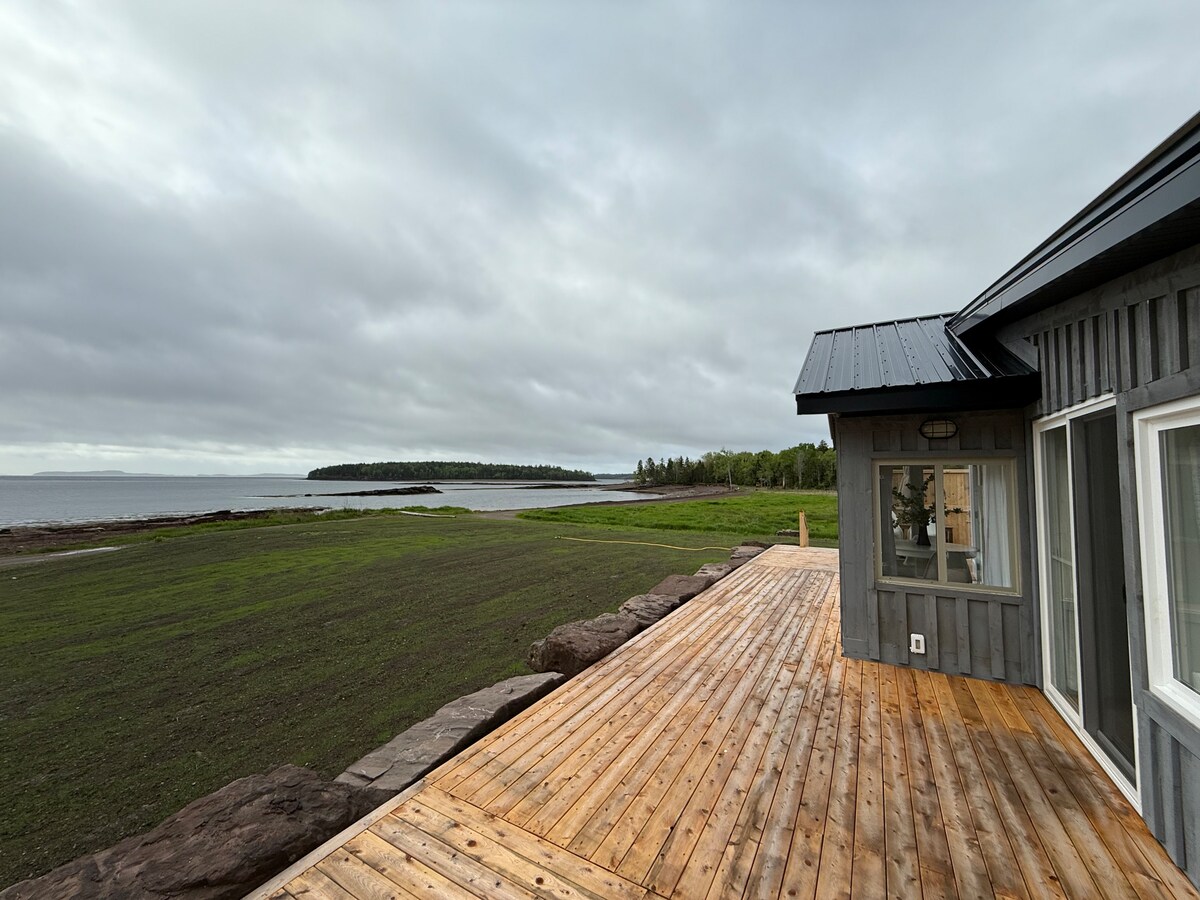 समकालीन वाटरफ़्रंट घर से मनोरम समुद्र के नज़ारों का आनंद लें। Passamaquoddy Bay (Bay of Fundy) पर सूर्योदय के साथ जागें। समुद्र तट पर कंघी करने या बस डेक पर बैठने और ज्वार देखने के लिए दिन बिताएं। रात में, हमारे ऊपर के मनोरंजन क्षेत्र में नेटफ्लिक्स के साथ आरामदायक हो या एक आउटडोर आग और स्टार टकटकी लगाएँ। सेंट एंड्रयूज के लिए 10 मिनट/न्यू रिवर बीच तक 35 मिनट ड्राइव करें। कई जोड़ों, परिवारों, काम करने वाले दूरस्थ, छुट्टी समारोह या लड़कियों के पलायन (+ गोताखोर ’और पक्षी पर नजर रखने वालों की खुशी!) के लिए बिल्कुल सही।