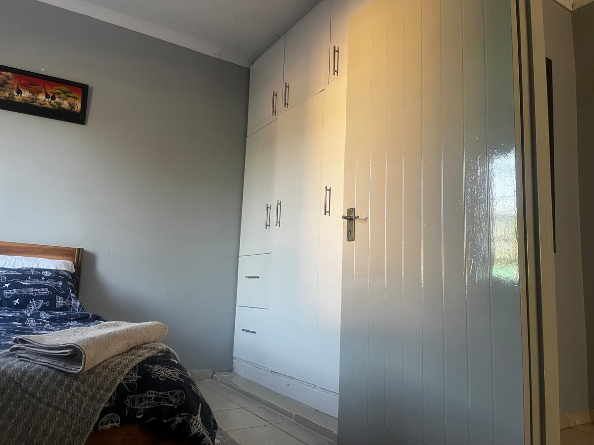 ठहरने की इस शांतिपूर्ण जगह पर पूरे परिवार/दोस्तों के साथ आराम करें। बोरोनियन,मौन में स्थित! 1 क्वीन बेड 2 सिंगल बेड 1 किचन/डाइनिंग 1 लिविंग रूम 2 बाथरूम(शॉवर हेड के साथ बाथरूम और अन्य में बाथ और शॉवर है) मुफ़्त वाईफ़ाई नेटफ़्लिक्स शोमैक्स घर के बाहर भोजन करने की जगह आउटडोर शॉवर और शौचालय 10by4 स्विमिंग पूल Braai जगह आउटडोर फ़ायर पिट पक्षी देखने के लिए अच्छी जगह