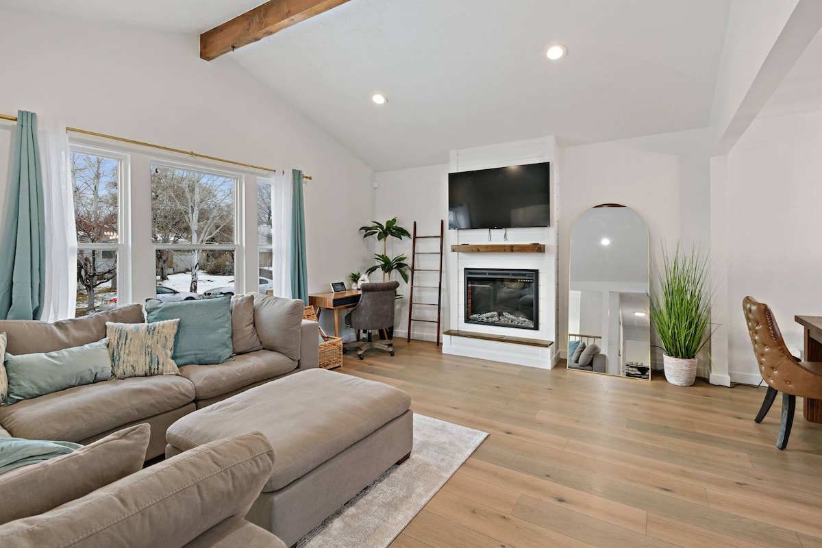 Experience your downtown Salt Lake City retreat, just steps from Vivint Arena! This cozy apartment sleeps 3 with a king bed and queen air mattress. Enjoy a rooftop pool, hot tub, and outdoor dining with a BBQ grill. Stay active with a gym and pool table. The fully equipped kitchen and in-unit washer/dryer add convenience. Pet-friendly with nearby parking options, this space is ideal for both short visits and long-term stays.