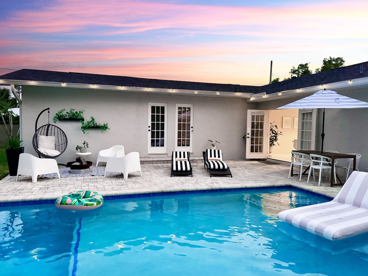 एक आश्चर्यजनक, नव पुनर्निर्मित 4/2 पूल घर में फ्लोरिडा सूरज का आनंद लें! हमने लगभग सब कुछ प्रदान किया है जो हम पांच 4k टीवी w/ Netflix और केबल, वाईफाई, गर्म (वैकल्पिक) नमक पानी पूल w/ 7' गोपनीयता बाड़, वयस्क बाइक, समुद्र तट गियर, पैक और प्ले, कार्यालय, मंडल खेल, आराम लाउंज कुर्सियां, स्टॉक किचन, वॉशर और ड्रायर, गेराज पार्किंग, कुत्ते टोकरा, सभी एक शांत और सुरक्षित पड़ोस में। ओह, और बेशक यह विश्व प्रसिद्ध समुद्र तटों के लिए सिर्फ 5 मील की दूरी पर है।