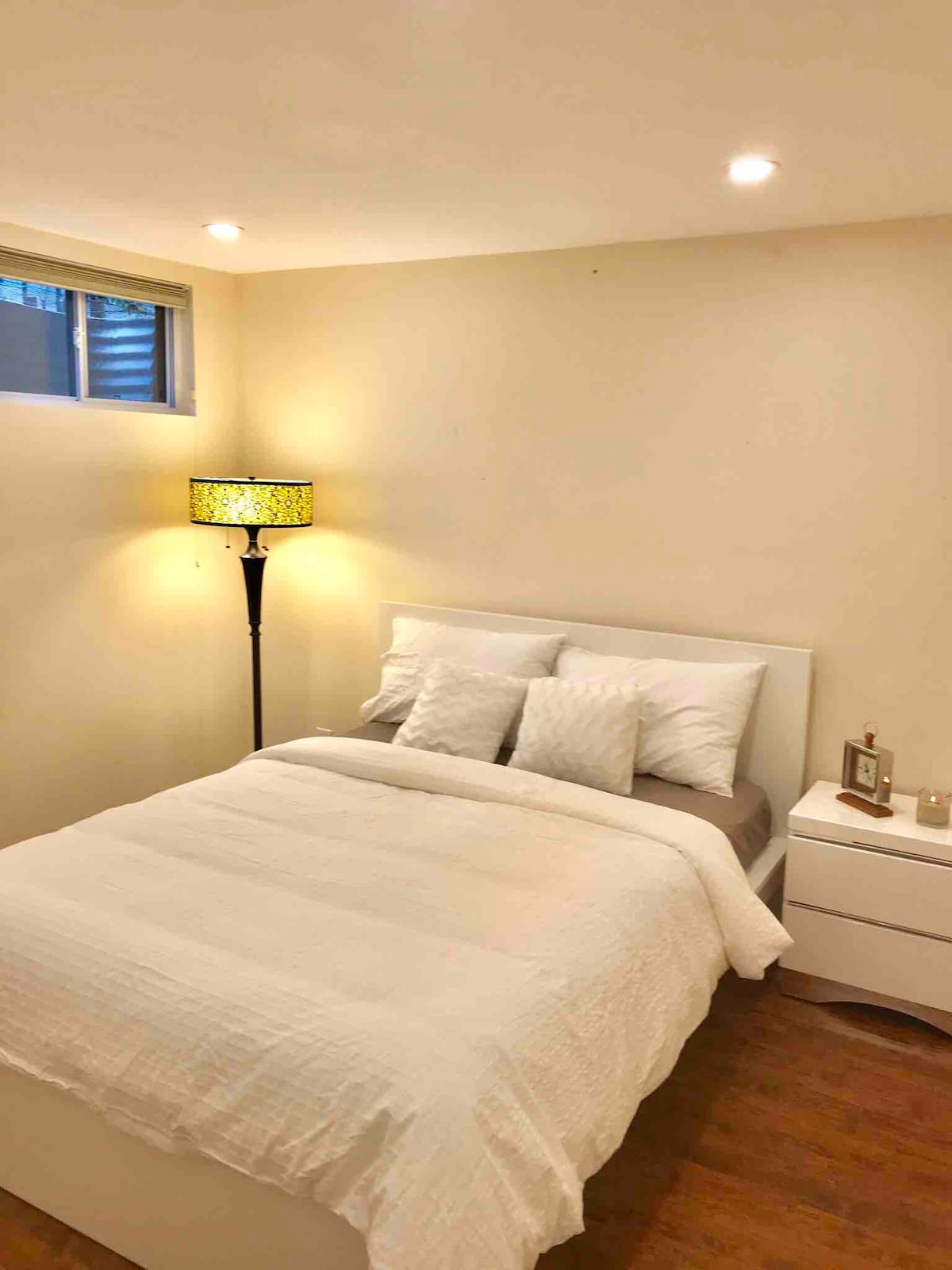 अच्छे क्वालिटी के फ़र्नीचर और उपकरणों और अलग प्रवेशद्वार वाली इस पूरी तरह से निजी और अनोखी जगह में स्टाइल का मज़ा लें। 800 वर्ग फ़ुट के इस 1 - बेडरूम वाले बेसमेंट सुइट में लिविंग स्पेस, किचन और बाथरूम के साथ - साथ वॉक - इन कोठरी और वॉशर और ड्रायर के साथ - साथ प्रीमियम केबल टीवी पैकेज और वाई - फ़ाई भी शामिल है। यह प्रॉपर्टी पार्कों के करीब एक अच्छे आस - पड़ोस में स्थित है और सभी सुविधाओं के लिए एक छोटी ड्राइव है और जोड़ों के लिए एकदम सही है। मेहमानों के लिए पार्किंग की सुविधा नहीं है।
