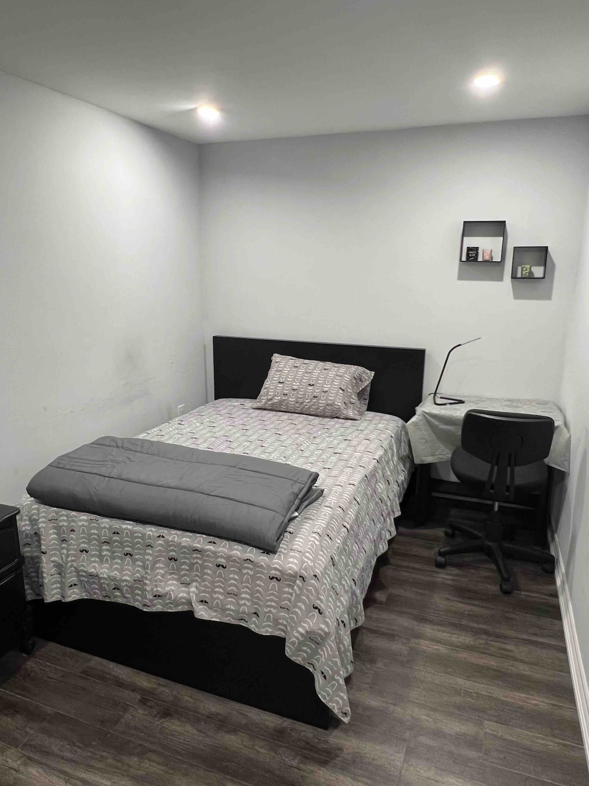 Private, Spacious Basement Suite | Separate Entrance | Near Downtown Brampton Enjoy a fully private basement with separate entrance, featuring 1 bedroom with two queen beds, a large living room with bed-cum-sofa, electric fireplace, 75” TV, dining table, and lift-top coffee table. Dedicated workspace, vanity, fast Wi-Fi with extender, full kitchen with complimentary food, and clean washroom. 5 minutes drive from GoStation, 5 minutes walk to nearest bus stop, minutes from downtown and amenities.