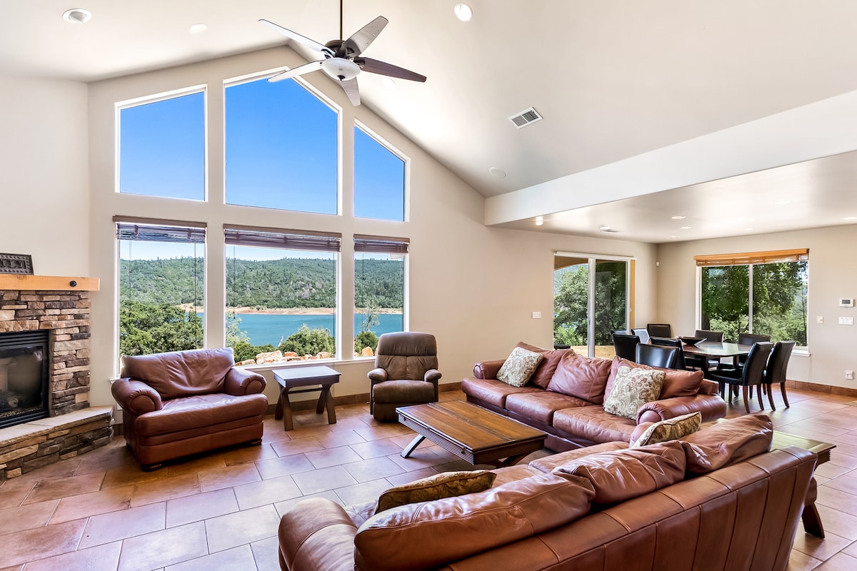 Incredible home inside Collins Lake campground! Open floor plan, high ceilings, lots of windows with lake views. Chef's kitchen. 4 large bedrooms with 3 master bedroom suites. 4 bathrooms. Master bathroom with jacuzzi tub. DISH TV. Fast WIFI. Outside shower. Outdoor BBQ & fire pit. EV Charger! Walk to lake! Boat Parking. Swimming, boating, hiking trails, fishing, playground, beach, volleyball court, zip line, Marina, boat/kayak/paddle board rentals, onsite store with ice cream! Includes passes!