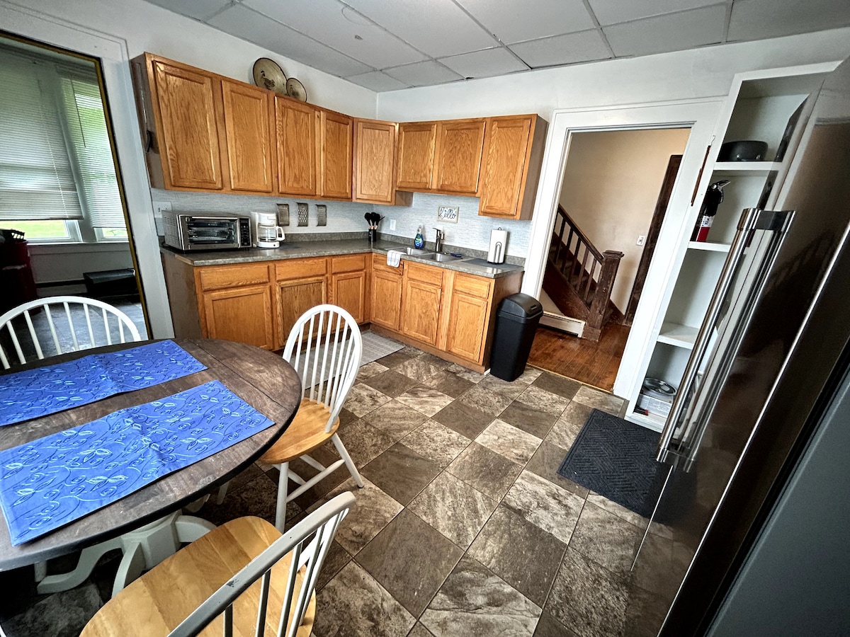 क्षमा करें, 12 वर्ष से कम उम्र का कोई बच्चा नहीं। इस बड़े अनाज बिन को पुनः प्राप्त खलिहान की लकड़ी और कई प्राचीन वस्तुओं का उपयोग करके एक देहाती दो कहानी पलायन में बदल दिया गया है। 700 वर्ग फुट के मुख्य फर्श में एक पूरा स्नान, एक विंटेज रेट्रो रसोई (माइक्रो वेव, टोस्टर, कॉफ़ी मेकर, रेफ़्रिजरेटर/फ़्रीज़र, कोई ओवन नहीं), लव सीट, वाईफ़ाई और डायरेक्ट टीवी के साथ एक स्मार्ट टीवी और 2 टेबल के साथ एक बड़ा डाइनिंग एरिया शामिल है। 500 वर्ग फुट खुले अटारी घर में एक बिस्तर और 2 क्वीन बेड शामिल हैं।