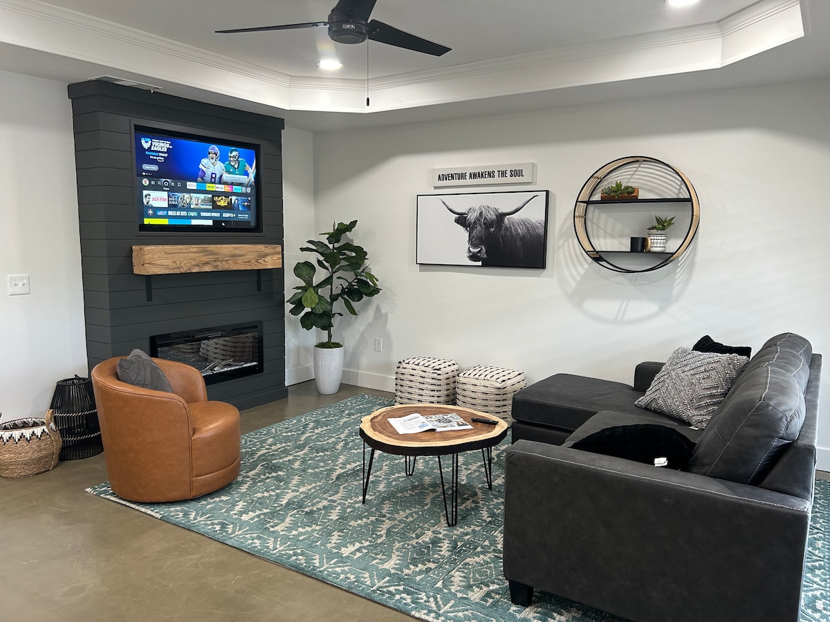 आओ और हमारे पूरी तरह से सुसज्जित Airbnb पर विलासिता और मस्ती का अनुभव करें! हमारी विशाल 3BR 2BA संपत्ति आराम से 9 मेहमानों को अपने राजा, रानी, चारपाई और ट्रंडल बेड के साथ मेमोरी फोम गद्दे के साथ समायोजित कर सकती है। 4500 गेम आर्केड, फ़ूसबॉल, एयर हॉकी, शफ़लबोर्ड और बहुत कुछ के साथ हमारे गेम रूम में अंतहीन मनोरंजन में खुद को विसर्जित करें। पूरी तरह से सुसज्जित रसोई और आउटडोर गैस ग्रिल सुविधाजनक खाना पकाने और भोजन के लिए अनुमति देते हैं। अभी बुक करें और दोस्तों और परिवार के साथ स्थायी यादें बनाएं!
