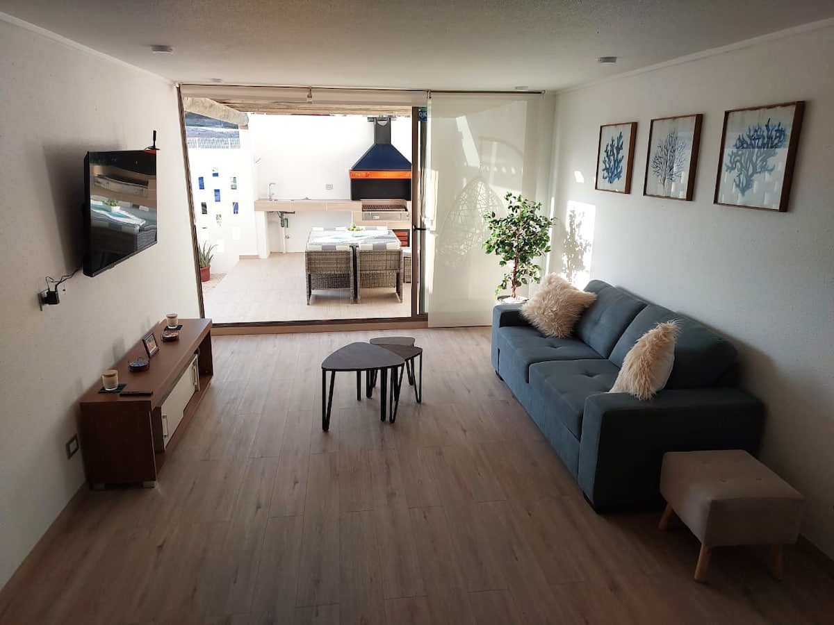¡Bienvenido a tu hogar en Caldera! Disfruta de este acogedor departamento en un condominio cerrado con acceso controlado 24/7, ideal para relajarte y conocer las mejores playas de Chile. Ubicación inmejorable: A pasos del centro, cerca de restaurantes, supermercados y a minutos de Bahía Inglesa. Todo lo que necesitas lo tienes a la mano. Piscina al aire libre, quincho y estacionamiento privado. Además, contamos con Wifi, sábanas y toallas.