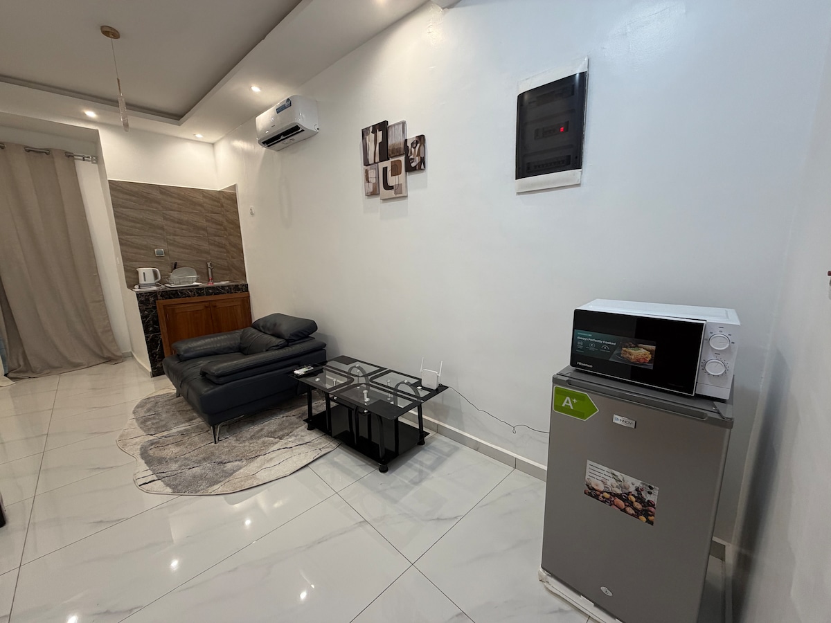 Stay in the heart of Bastos, just a stoneтАЩs throw from the embassies and IOM Canada. A bright 50m┬▓ flat with a spacious living room, a fully equipped kitchen, a comfortable bedroom and a bathroom with hot water. Enjoy a relaxation room with a steam room and sauna for your well-being, sports facilities with a trainer (for a fee), as well as a generator and a water reserve. Offering breathtaking views of the city of Yaound├й, the residence is secured 24 hours a day.