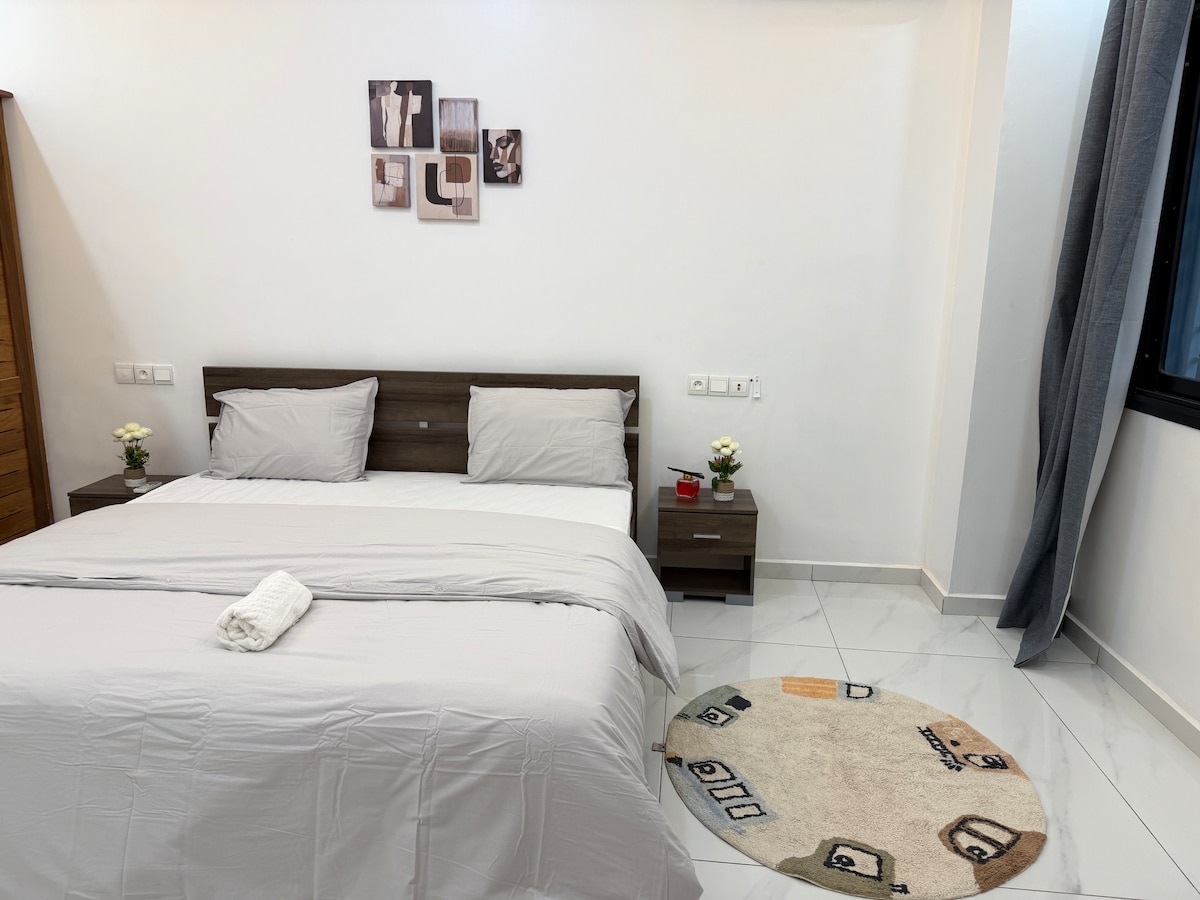 Stay in the heart of Bastos, just steps away from embassies and IOM Canada. Bright apartment with spacious living room, fully equipped kitchen, comfortable bedroom and bathroom with hot water. Enjoy a relaxation room with steam room and sauna for your well-being, sports equipment with a coach, as well as a generator and water reserve (Paid). Offering breathtaking views of the city of Yaound├й the residence is secure 24 hours a day.