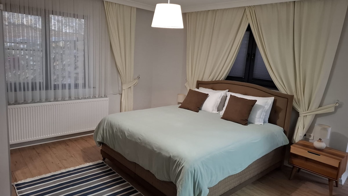 व्हाइट हाउस के टेरेस फ़्लोर पर मौजूद इस 1+1 अपार्टमेंट में, आप सूर्यास्त और आधी रात के अनोखे सितारों को देखकर अपने पेय पी सकते हैं, और अगर आप चाहें, तो 100 मीटर की दूरी पर समुद्र और समुद्र तटों तक पहुँच सकते हैं। हमारी व्यूइंग टेरेस के बेडरूम वाले हिस्से में डबल बेड, प्रवेश द्वार अनुभाग में, एक छोटा हॉल, हॉल में दो बेड सीट और एक बाथरूम है। (किराया तीन लोगों के लिए है)