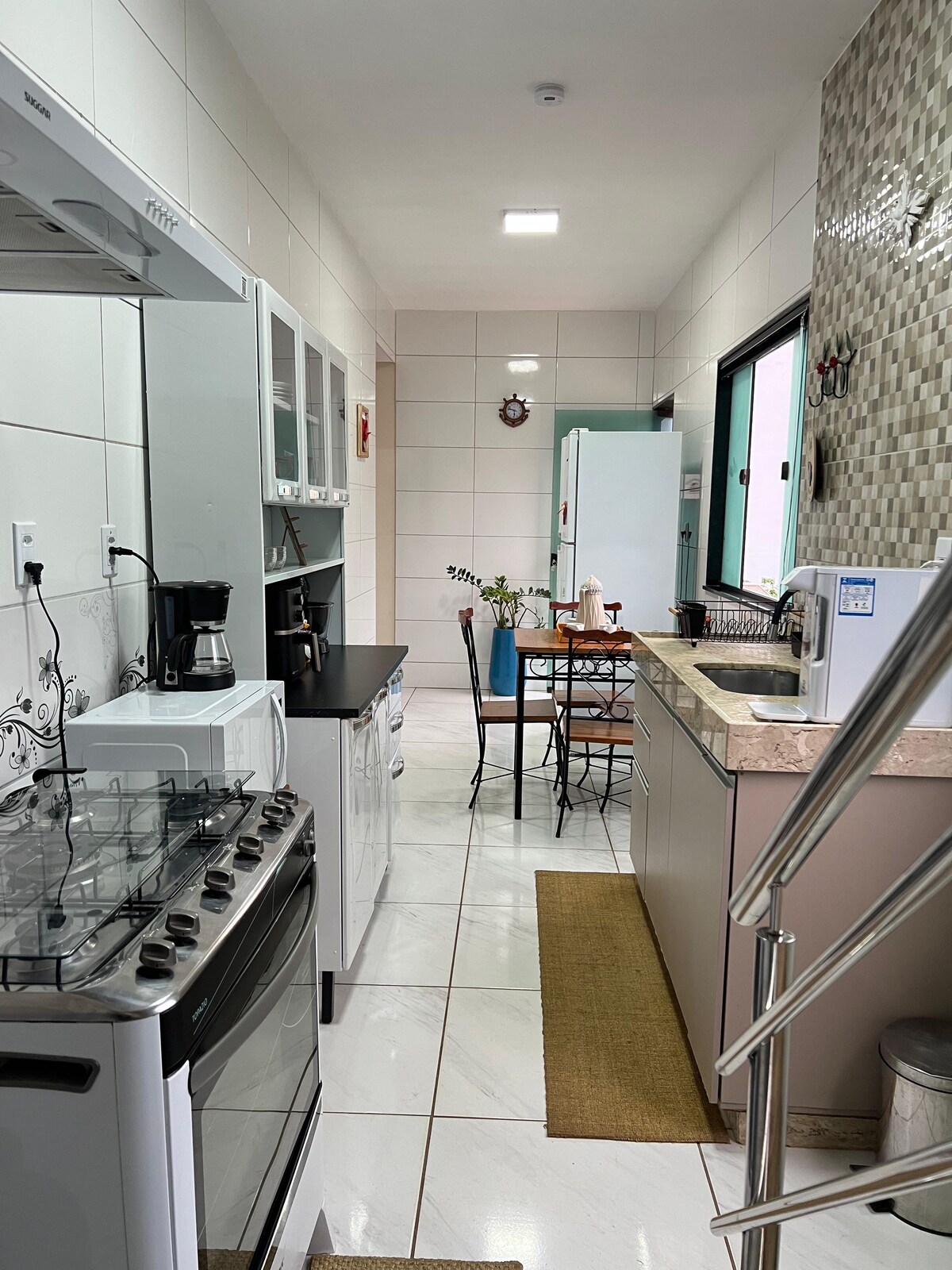 अधिकतम 8 लोगों के लिए ठहरने की जगह, 1 डबल बेड, 2 सिंगल बेड , 1 डबल बेड और 2 अतिरिक्त गद्दे। गैराज, चादरें, तौलिए, हेयर ड्रायर, आयरन, टीवी 50, एलेक्सा, वाई - फ़ाई, कुकटॉप, ओवन, फ़्रिज, एयरफ़्रायर, ब्लेंडर, सैंडविच मेकर, किचन के बर्तन के साथ पूरी जगह। खपत के लिए वाइन और स्पार्कलिंग वाइन (लागत एक तरफ, R$ 60.00 प्रत्येक बोतल)।