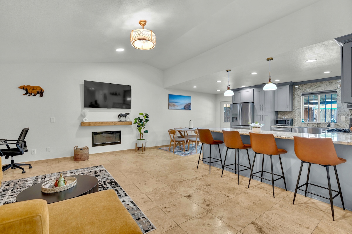 इस नए रीमॉडेल किए गए मिड - सेंचुरी मॉडर्न होम में अपने निजी नखलिस्तान में आराम करें और आराम करें! जैसे ही आप इस 3 बेडरूम 2 स्नान घर में प्रवेश करते हैं, आपको इसकी स्टाइलिश मध्य - शताब्दी वास्तुकला और आधुनिक रेट्रो सजावट द्वारा ले जाया जाएगा जो आपको प्रेरित करने के लिए यकीन है! हमने एक आरामदायक, स्टाइलिश और किकबैक जगह बनाई है जहाँ आप और आपके मेहमान शानदार पिछवाड़े में आराम कर सकते हैं या बस कुछ विनाइल का आनंद लेते समय आरामदायक चिमनी से दिन बिता सकते हैं!