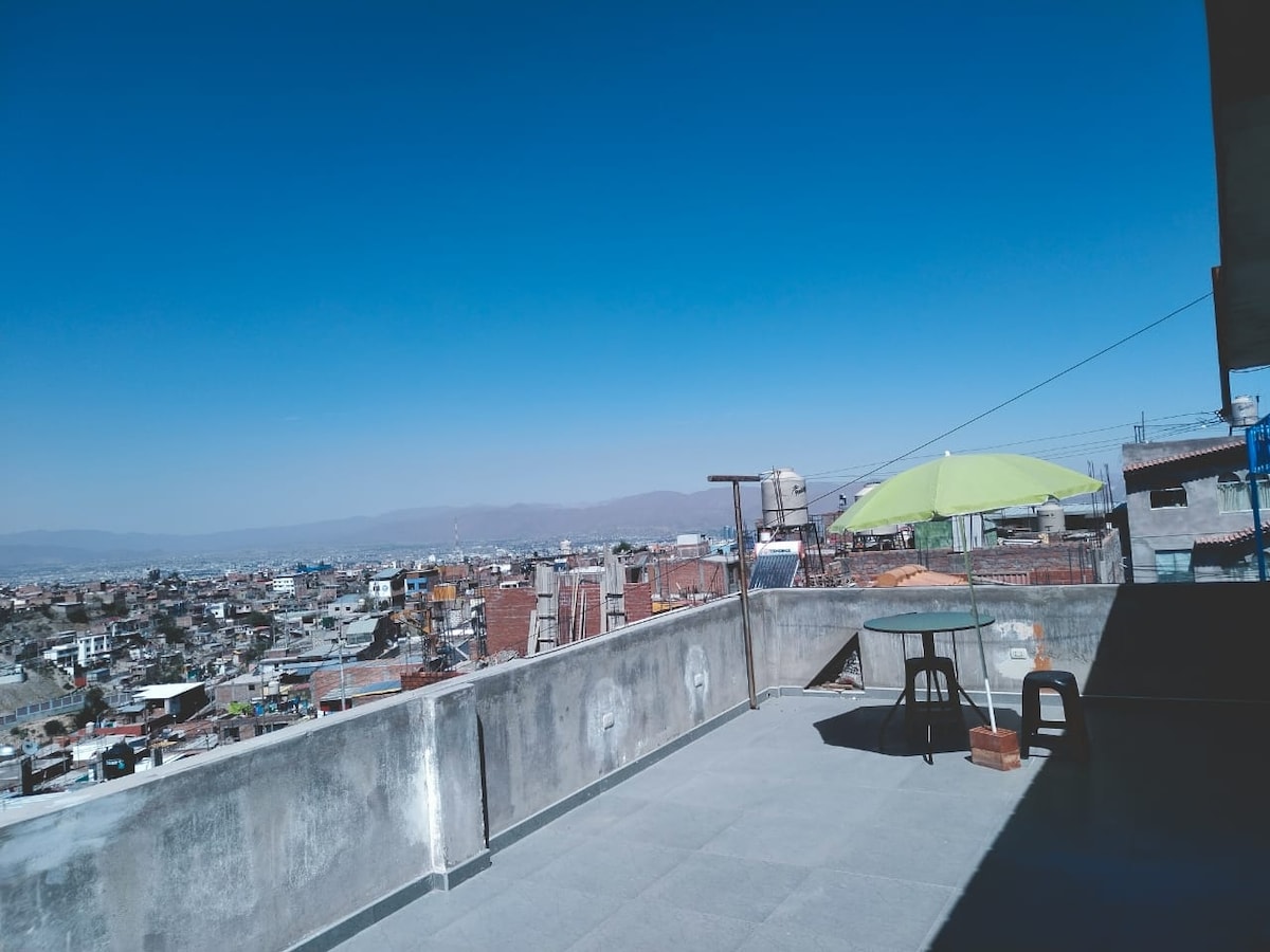 अरेक्विपा में हमारे आधुनिक और आरामदायक अपार्टमेंट में आपका स्वागत है, जो शहर की सैर करने के बाद आराम करने के लिए आदर्श है। सेकंड फ़्लोर पर मौजूद यह आकर्षक जगह निजता और सुकून देती है। इसमें दो बेडरूम, तीन बेड और दो पूरे बाथरूम हैं, जो परिवारों या छोटे समूहों के लिए बिल्कुल सही हैं। एक दिन के रोमांच के बाद आराम करने के लिए सुसज्जित किचन और लिविंग रूम के साथ। हम एयरपोर्ट से सिर्फ़ 5 मिनट की दूरी पर हैं और डाउनटाउन, प्लाज़ा (कार से) से 30 मिनट की दूरी पर हैं।